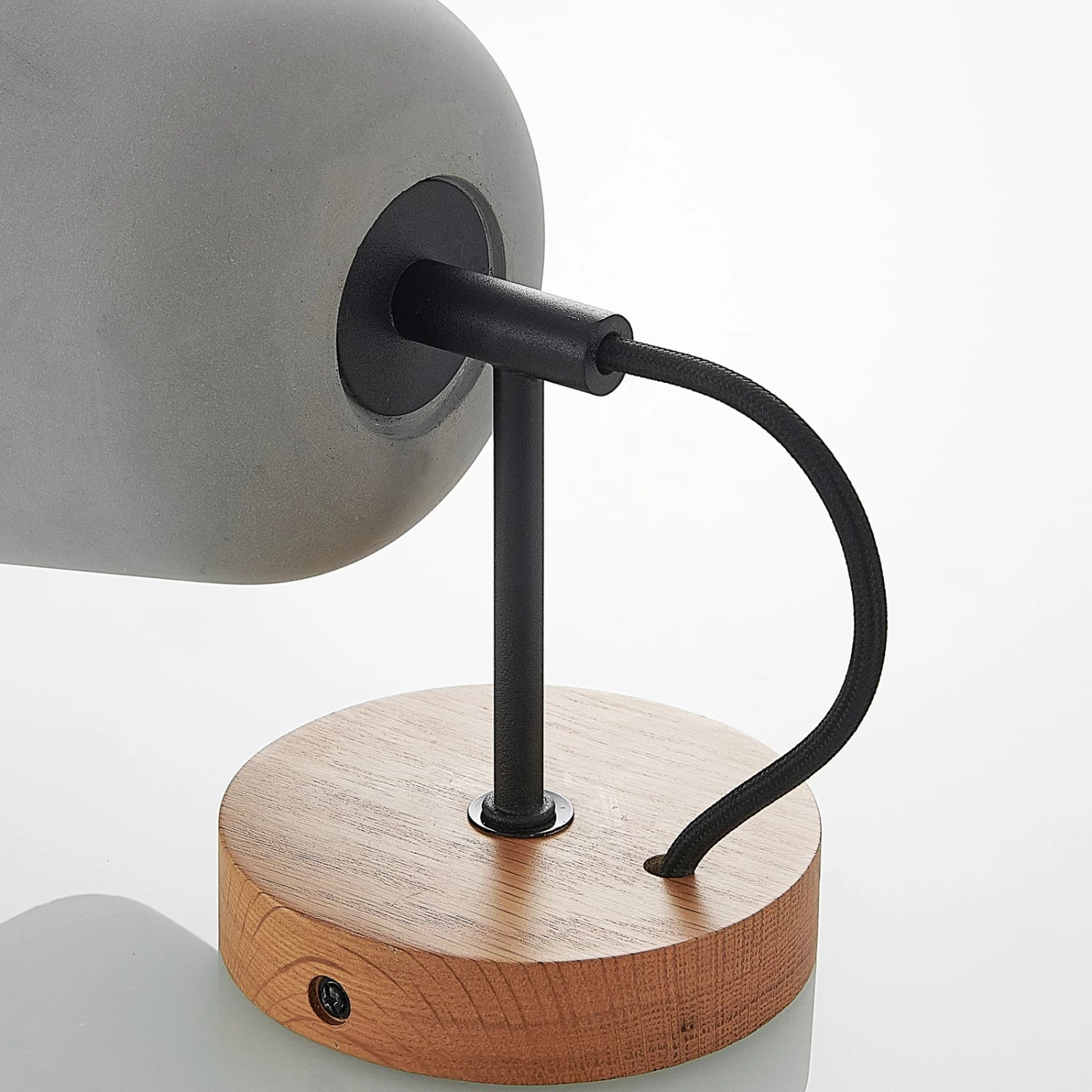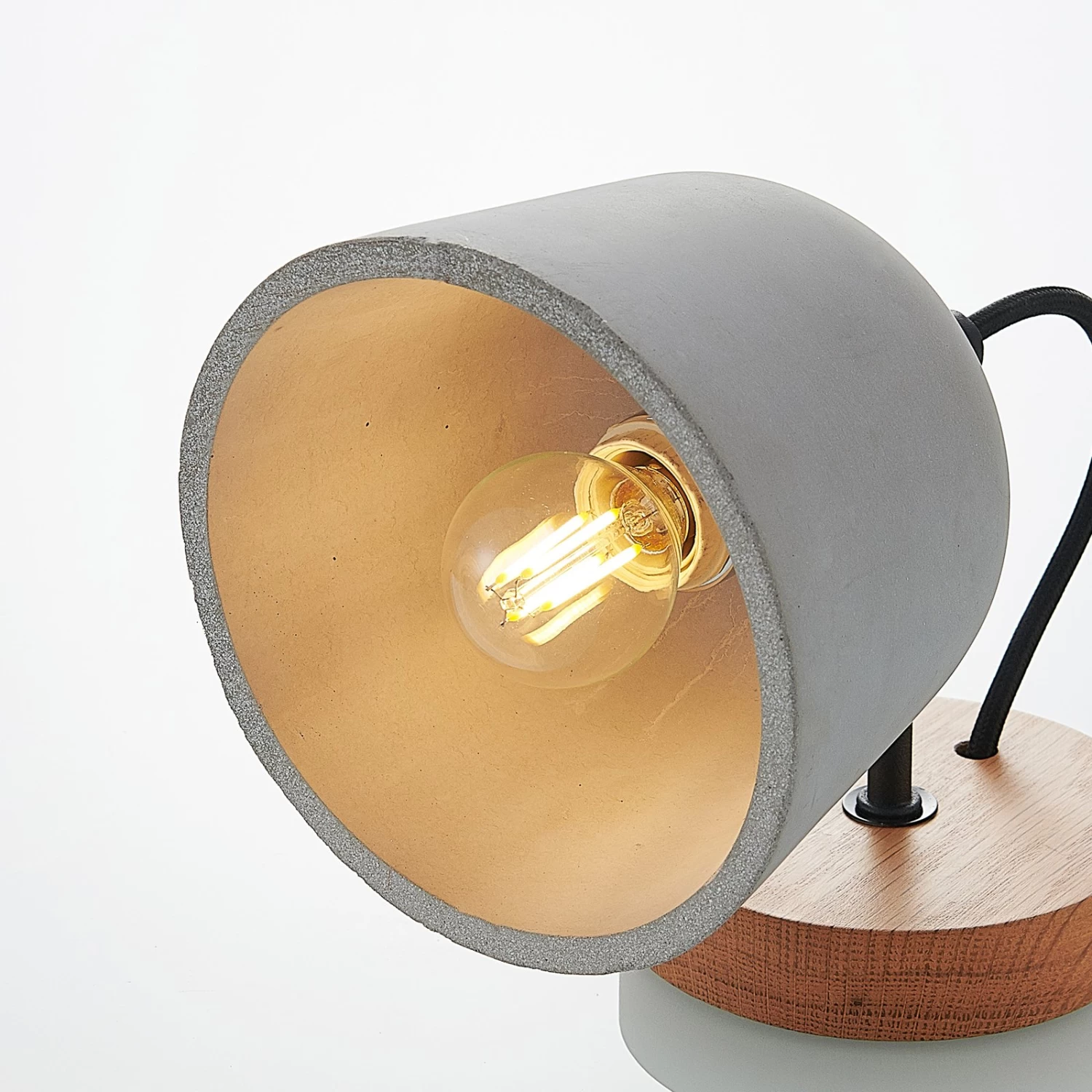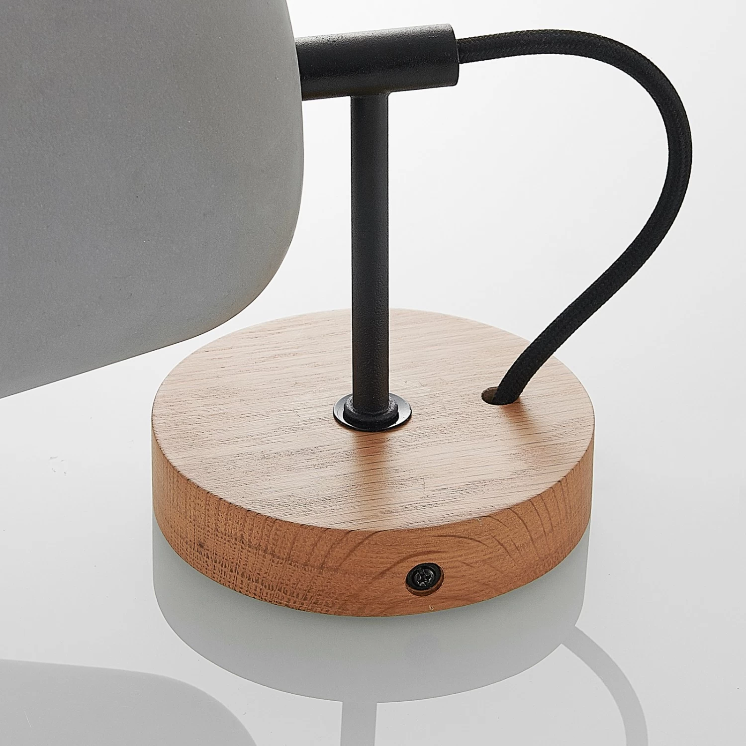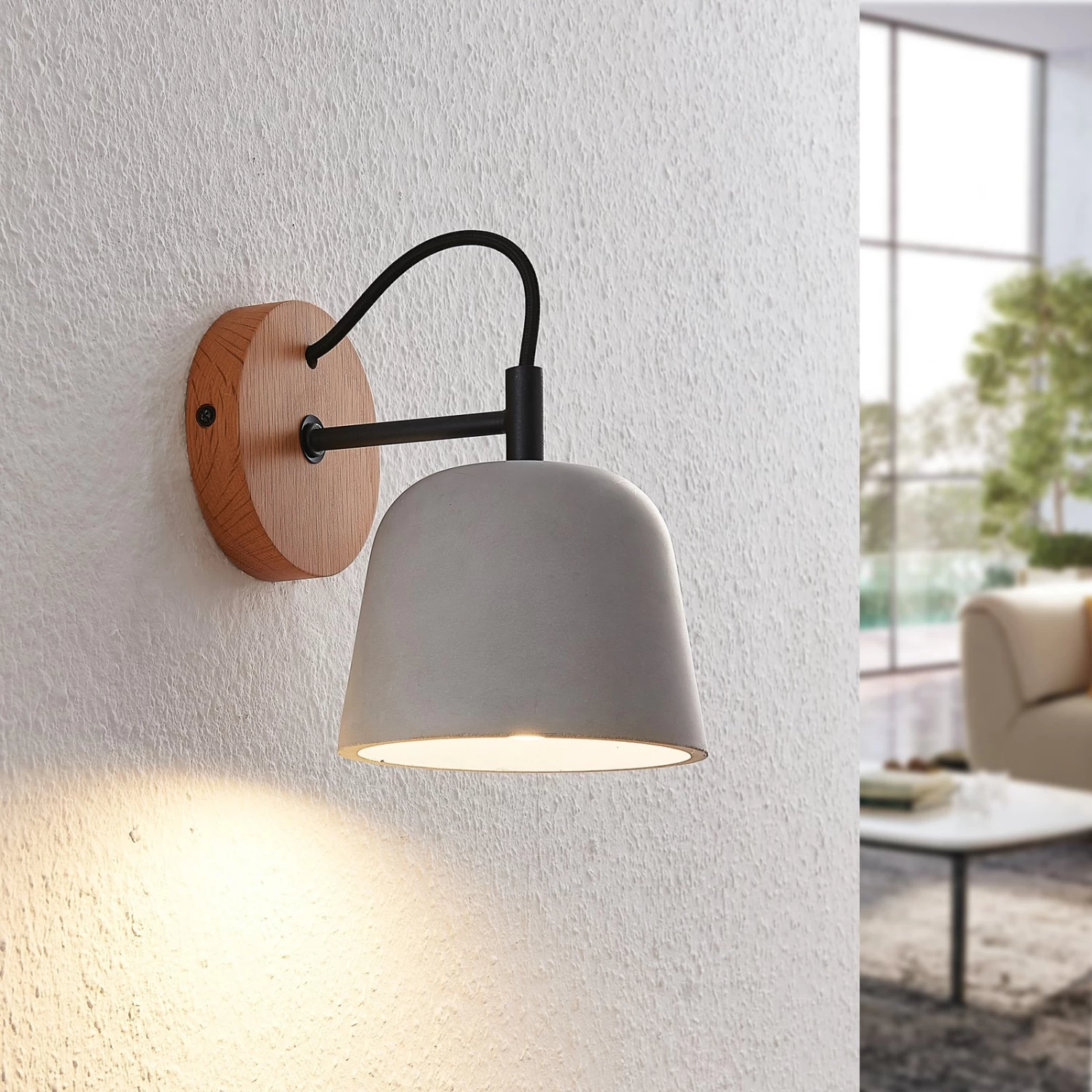 Elegante Wandleuchte Kalinda mit grauem Betonschirm und rundem Gestell aus Eichenholz im 2er-Set