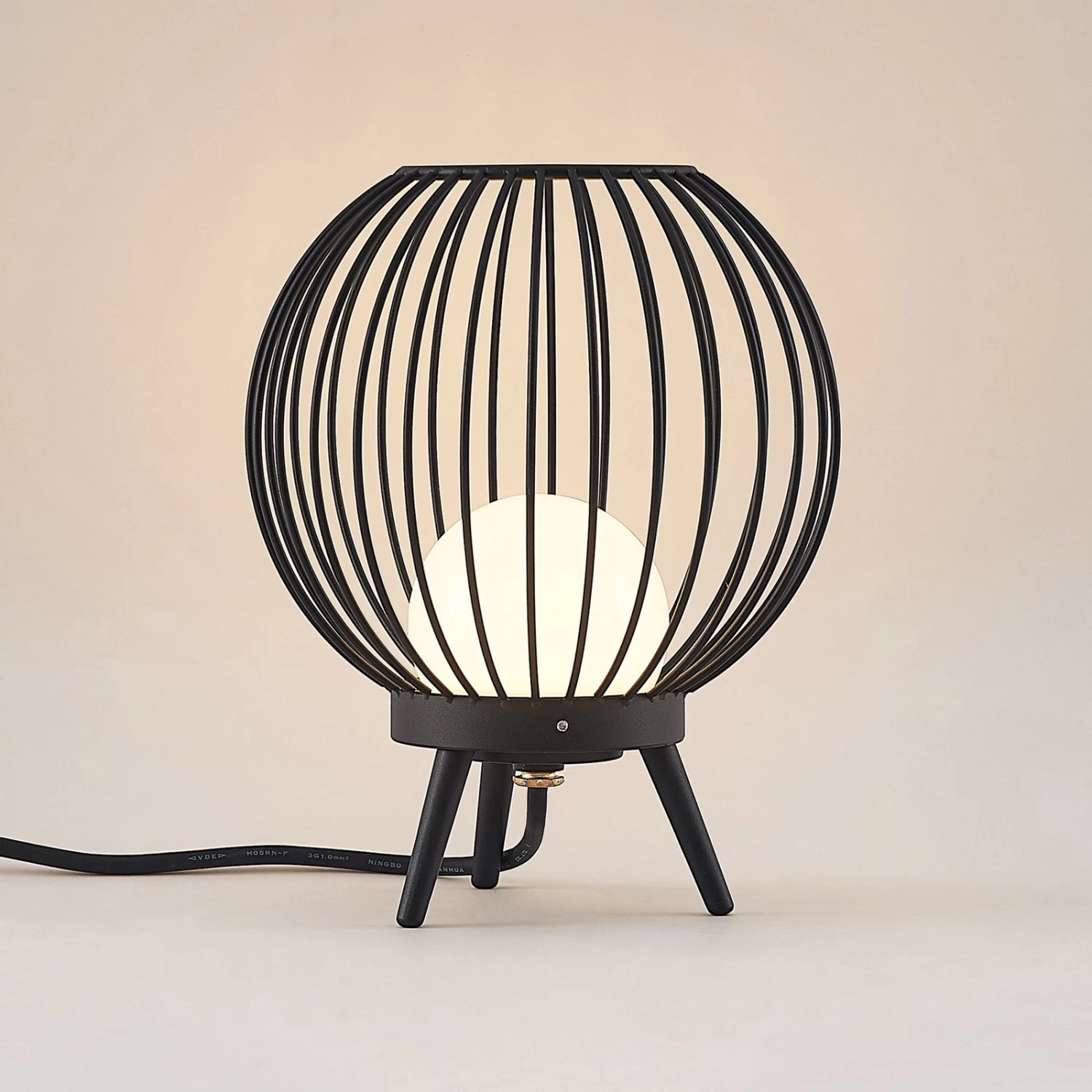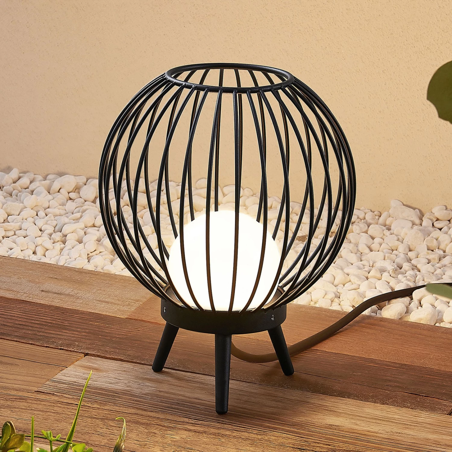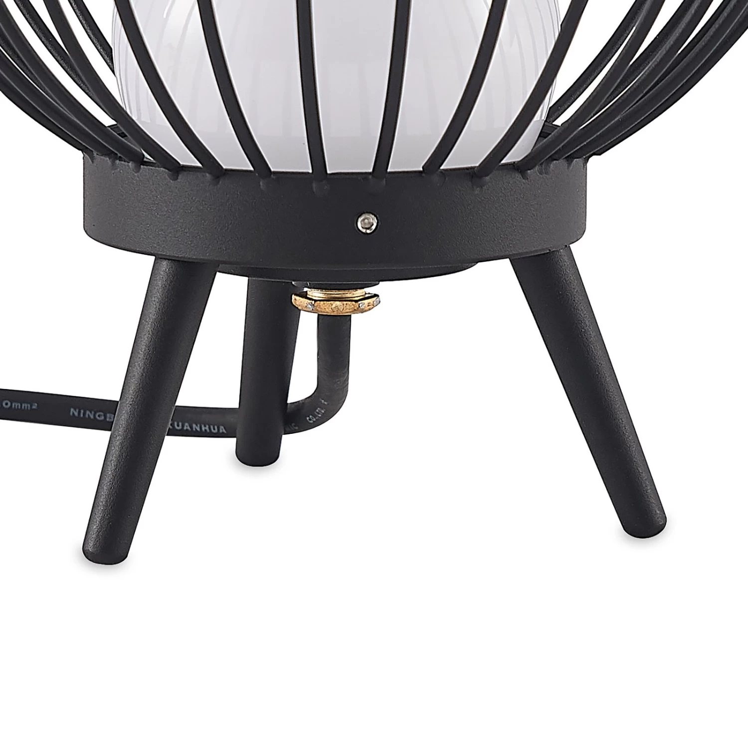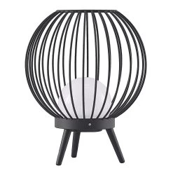 Die LED-Tischleuchte Kartivan kommt in einer außergewöhnlichen Bauform daher, denn sie hat einen auffallenden Leuchtenschirm, der wie ein Käfig gestaltet ist. Im Inneren des schwarzen Käfigs befindet sich eine Schirmabdeckung aus weißem Polycarbonat in Kugelform und wirkt wie ein Lichtdiffusor. Auf diese Weise lässt sich das Licht blendfrei und homogen an die Umgebung abstrahlen. Der warmweiße Lichtschein wirkt einladend und dank der guten Schutzart lässt sich diese Tischleuchte auch im Bereich der Terrasse einsetzen, sodass man sie auch bei gemeinsamen Abendstunden im Garten genießen kann.