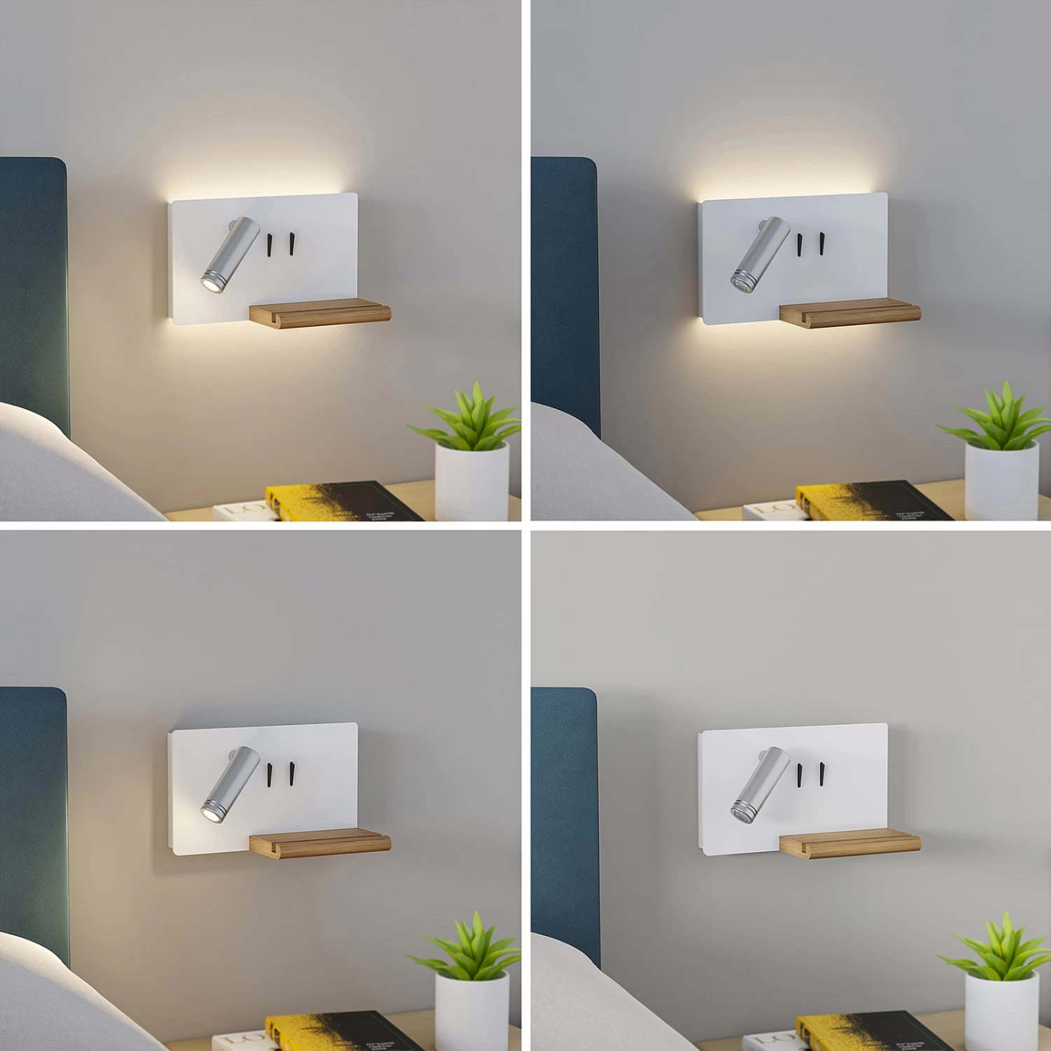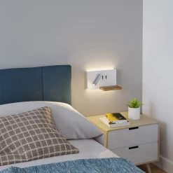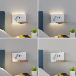 Kimo überzeugt mit verschiedenen Funktionen und ist alles in allem eine sehr moderne Wandleuchte mit stilvollem Äußeren und einem zeitgemäßen Ausdruck. Die Wandblende ist eckig und leicht abgerundet, an der Hinterseite sind ringsum zahlreiche LEDs befestigt, die ein eher indirektes Licht erzeugen und somit besondere Gemütlichkeit erschaffen. Der Strahler an der Vorderseite hingegen steht für zielgerichteten Lichtschein zum Lesen und kann nach Belieben bewegt werden. Über zwei Schalter lassen sich die beiden Lichtquellen getrennt voneinander oder gemeinsam einschalten und die Ausstattung mit einem USB-Anschluss ist ein großes Plus, weil man so bequem das Handy hier laden und dank einer Ablagefläche aus hellem Bambusholz, das eine tiefe Rille besitzt, auch einfach und sicher abstellen kann, bis es den vollen Ladestatus erreicht hat und wieder vollständig zur Verfügung steht.
