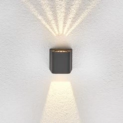 Die AuĂenwandleuchte Karsten ist mit ihrer dezenten Form und der dunklen OberflĂ€che ein zeitloser Lichtspender fĂŒr den AuĂenbereich. Ausgeschaltet schlicht und zurĂŒckhaltend, zeigen sich die besonderen QualitĂ€ten der Wandleuchte Karsten erst im eingeschalteten Zustand, denn die liegen eindeutig in der effektvollen Lichtwirkung. Das Licht wird nur nach oben und unten abgegeben und dort sind die LichtauslĂ€sse so gestaltet, dass das Licht in einem mittelbreiten Winkel nach unten austritt und streifen- bzw. strahlenförmig nach oben entweicht. Bringt man die AuĂenwandleuchte an einer Hauswand oder einer Mauer rund um das Haus an, dann wird sie am Abend natĂŒrlich zu einem ganz besonderen Blickfang, der eine ganz individuelle AtmosphĂ€re zu erzeugen weiĂ.