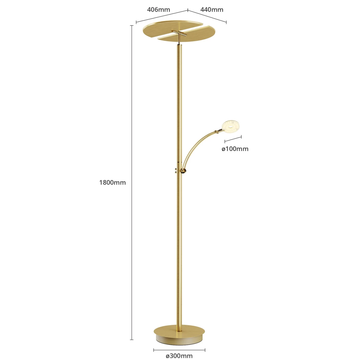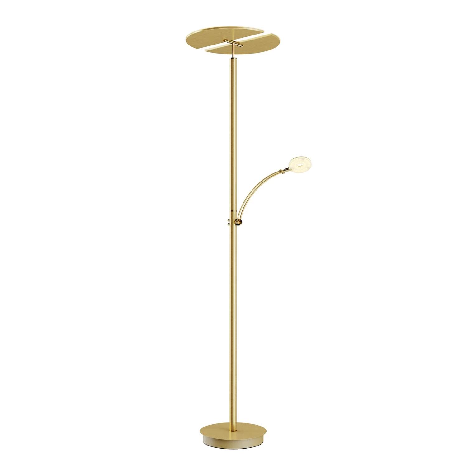 Messingfarbener LED-Deckenfluter Anniki mit verstellbarer LeuchtflÀche und separatem Leselicht, dimmbar