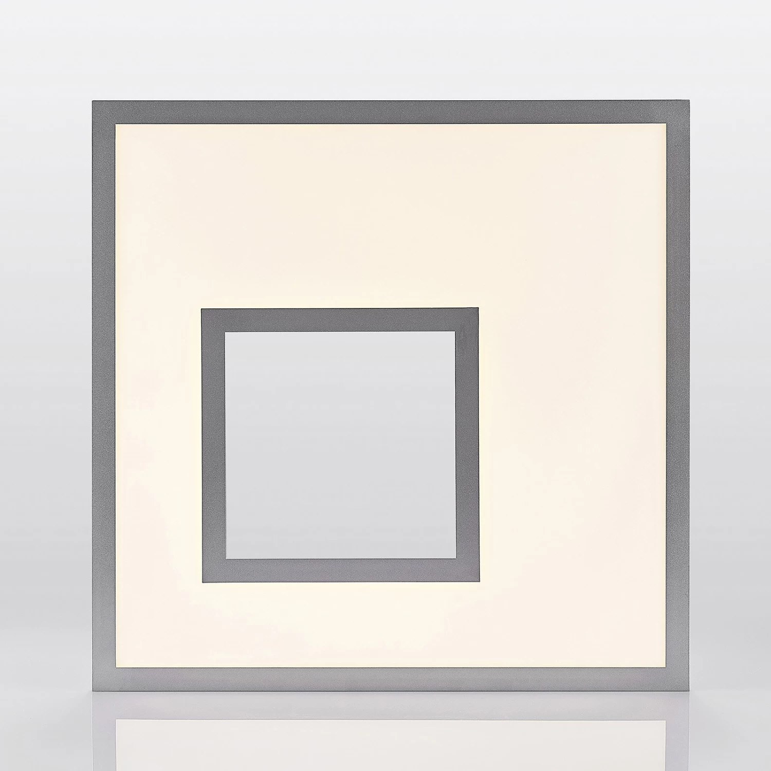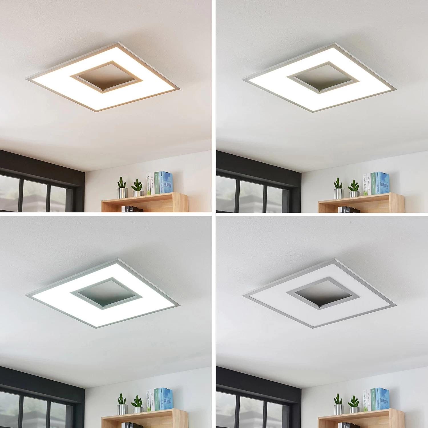 Eckige LED-Deckenlampe Durun mit dekorativer Auslassung und silbernem Rand, Helligkeit und Lichtfarbe verstellbar