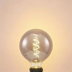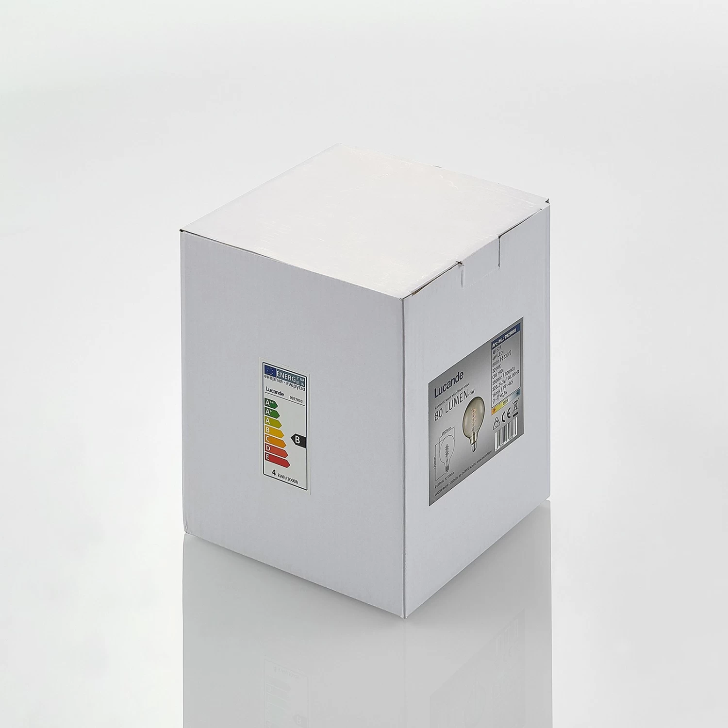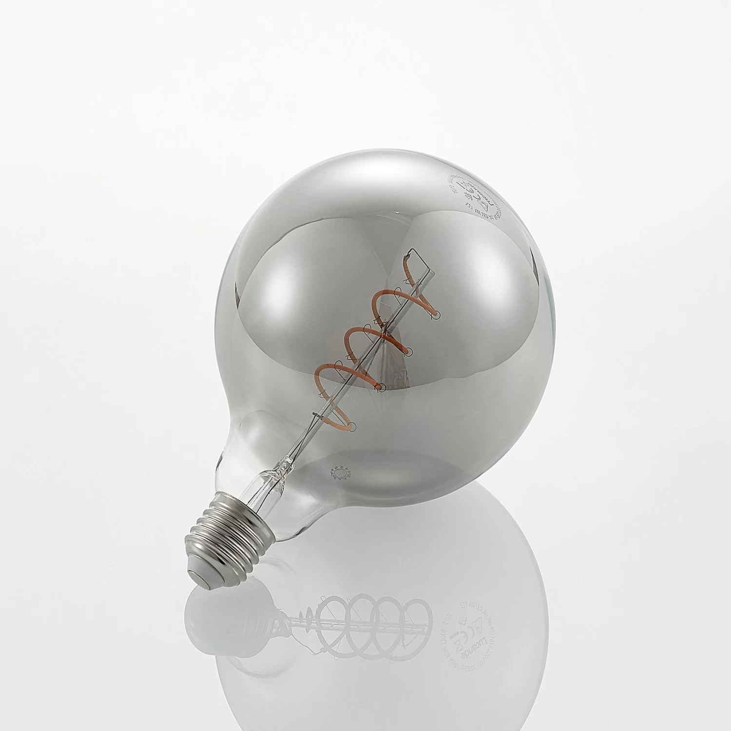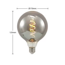 Angesagte Rauchglasoptik trifft auf effiziente LED-Technik. Diese E27-LED-Globelampe begeistert sowohl mit ihrer ausgefallenen Optik als auch mit der stromsparenden Technik. Die Lampe lĂ€sst sich bei Bedarf ĂŒber einen Phasenanschnitt- oder Phasenabschnittdimmer dimmen und eignet sich vor allem fĂŒr Leuchten, die entweder einen offenen oder keinen Leuchtenschirm besitzen. Das Leuchtmittel besitzt eine besonders gute Farbwiedergabe.