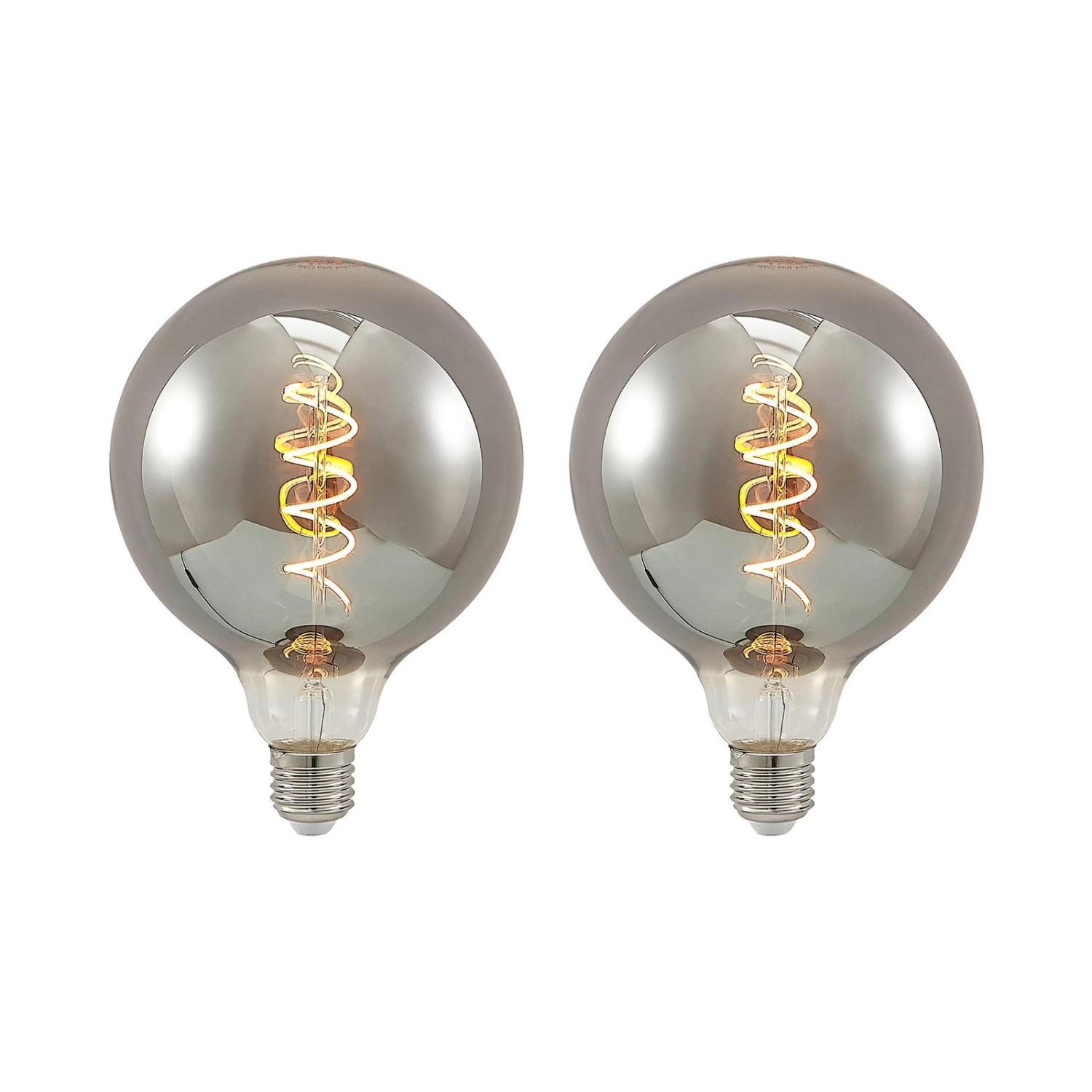 E27 G125 LED-Globelampe 4W mit dekorativem Rauchglas, dimmbar, im praktischen 2er-Set