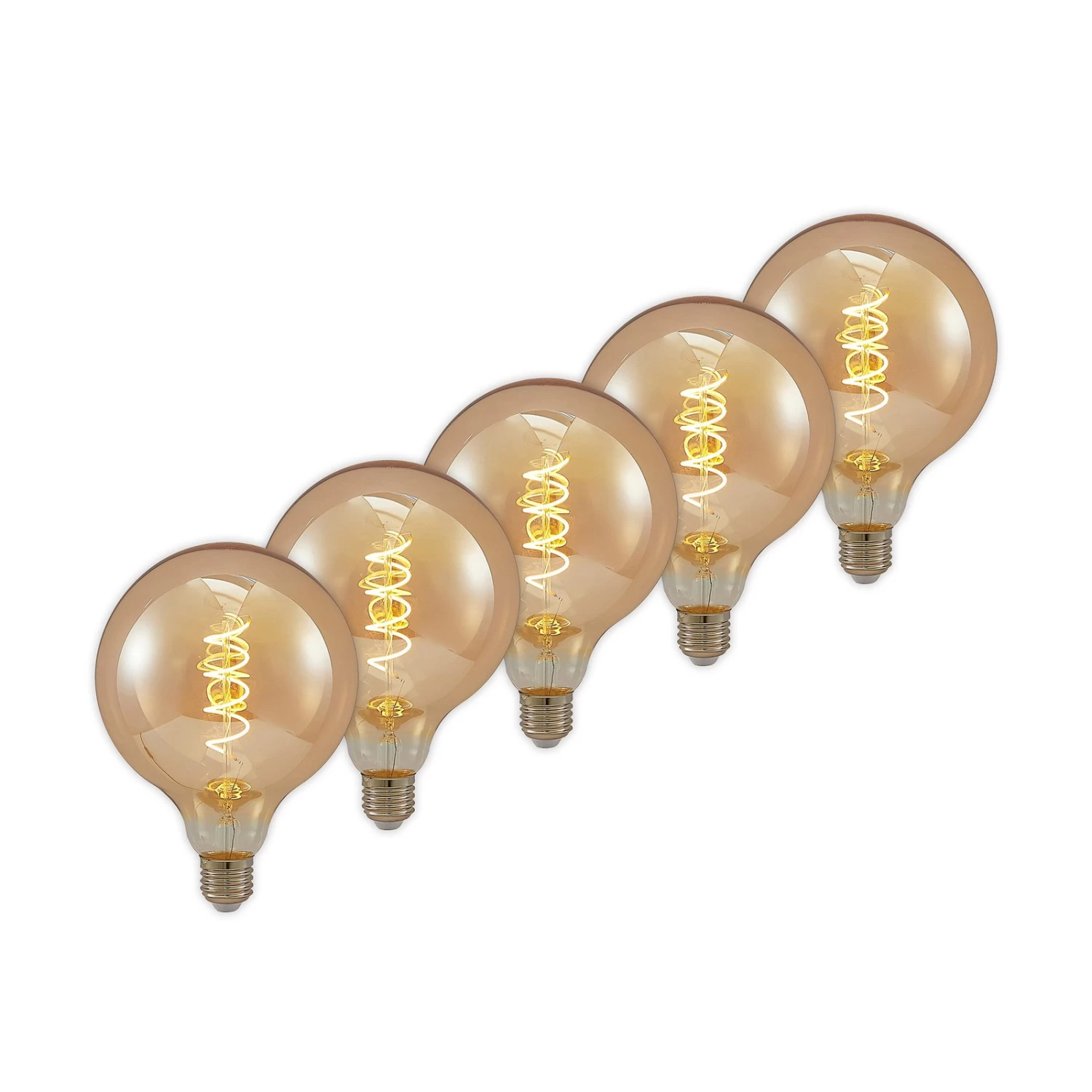 E27 G125 LED-Globelampe 4W mit amberfarbenem Glas, dimmbar, CRI >; 90, in praktishcem 5er-Set