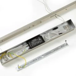 Lio zeichnet sich durch ihr warmweißes Licht mit wohnlichem Charakter aus. Die LED-Hängeleuchte kann über einem Esstisch montiert werden, wo sie sehr gut zur Geltung kommt und gute Dienste leistet. Als Vorteil erweist sich die Höhenverstellbarkeit, denn so kann Lios Abhängung mit wenigen Handgriffen von 110 cm auf 200 cm erweitert werden, was gerade über einem Essplatz ein hilfreiches Feature ist. Die Innenseite des Schirms, der aus zwei länglichen Metallbögen besteht, ist mit warmtöniger Goldfolie belegt, so dass ein sehr gemütliches Licht abgestrahlt wird. An der Außenseite ist der modern wirkende Schirm schwarz lackiert und mit einem goldenen Bürstenfinish versehen, das einen sehr individuellen Ausdruck entstehen lässt.