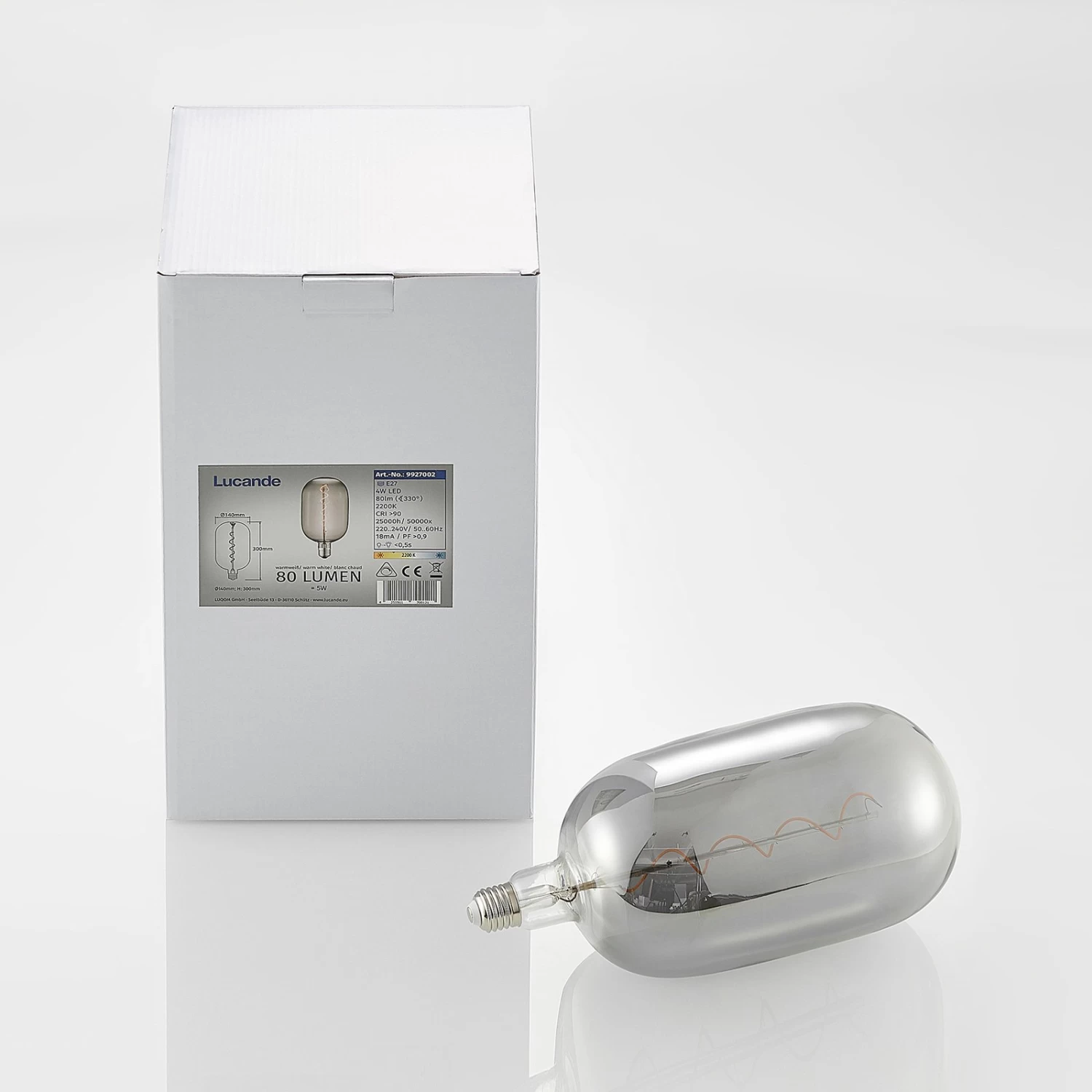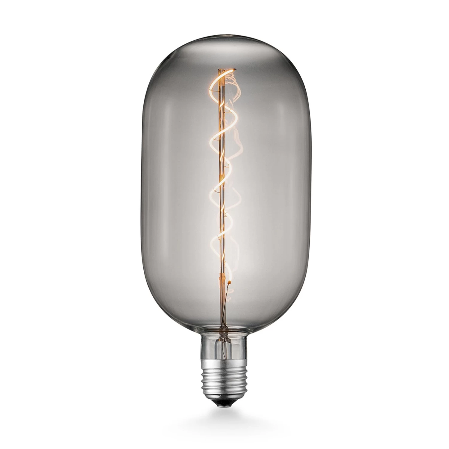 Ein besonderes Flair verleiht diese E27 LED-Lampe, denn sie ist nicht nur in einer ausladenden Röhrenform gestaltet, sondern punktet mit einer Rauchglasoptik, die zur Zeit angesagt ist. Die Lampe lĂ€sst mithilfe eines Phasenanschnitt- und Phasenabschnittdimmers in der Helligkeit regulieren und ist dank ihrer LED-Technik sparsam im Verbrauch. Ideal fĂŒr dekorative Leuchten!