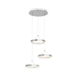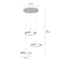 Dreiflammige LED-Pendellampe Lyani mit leuchtenden Chromringen, per Schalter dimmbar