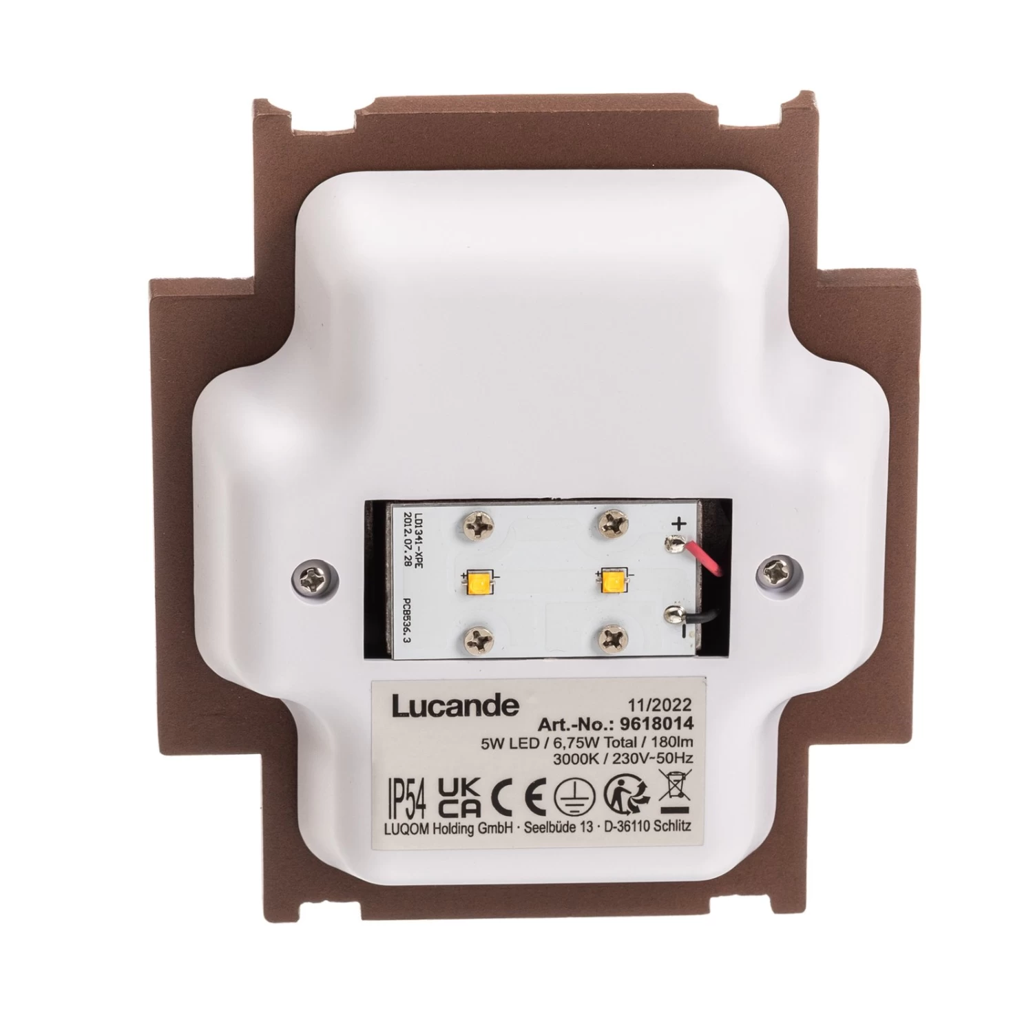 Rostbraune LED-Wandleuchte Enisa in besonderem Design für eine indirekte Beleuchtung des Außenbereichs