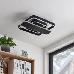 Schwarze LED-Deckenleuchte Linetti fĂŒr moderne RĂ€umlichkeiten