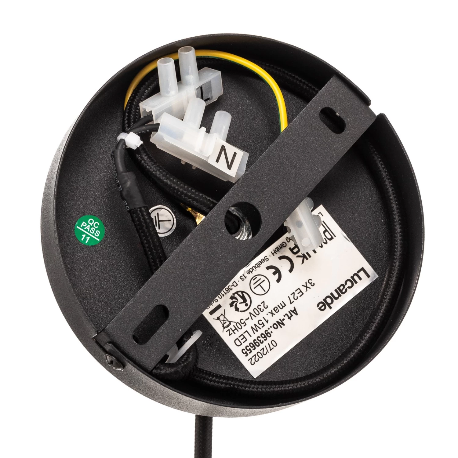 Malviras ĂŒberzeugt mit einem sehenswerten Look und ist eine Designleuchte in exklusiver Gestaltung, die einen runden Textilschirm in Schwarz besitzt und zudem noch mit hĂŒbschem Dekor in Gold geschmĂŒckt ist. So ergibt sich ein ganz besonderes Aussehen, zumal die Metallelemente im unteren Teil filigran gearbeitetet sind und BlĂ€ttern gleichen. Das bewirkt auch ein sehr schönes Lichtspiel mit Licht- und Schattenanteilen. Die HĂ€ngeleuchte aus Designerhand macht sich in vielen Wohn- und SchlafrĂ€umen sehr gut, sie kann aber auch in einer gewerblichen Umgebung eingesetzt werden und schmĂŒckt dort Hotels und gastronomische Objekte auf passende Weise und mit dem gewissen Etwas, das luxuriösen Flair bringt und von einem eleganten Stil geprĂ€gt ist. Die Innenseite des Schirms ist ebenfalls golden und sorgt fĂŒr gemĂŒtlichen Reflexionen des Lichts.