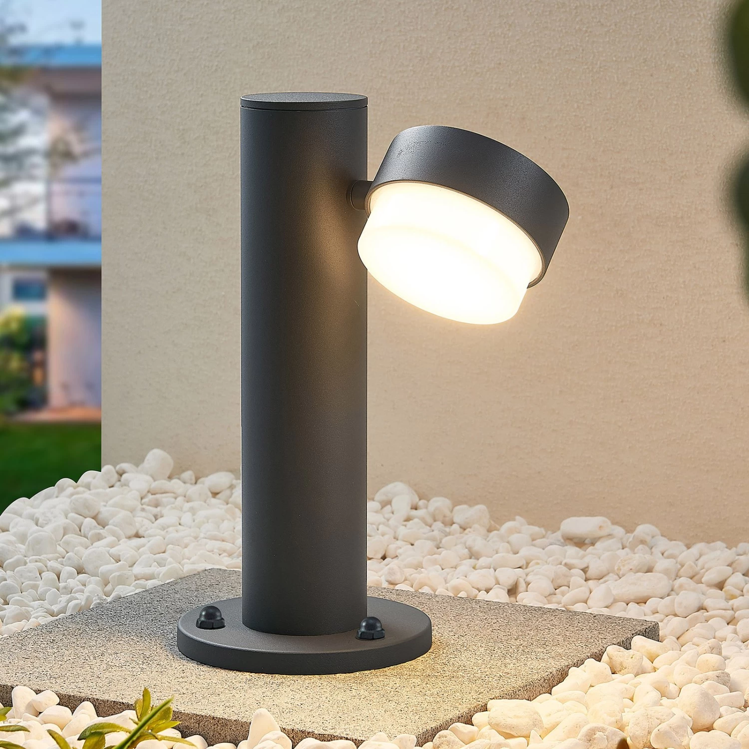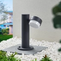 Die Sockelleuchte Marvella ist die perfekte Begleiterin für die Beleuchtung eines Weges oder eines Gartens. Sie vereint ein minimalistisches Design mit robusten Materialien und hat eine dezente, dunkelgraue Farbgebung. Ihr Standbein ist schlank und trägt einen kompakten Leuchtenschirm, der mit entsprechenden Leuchtmitteln bestückt werden kann und sich bewegen lässt. Das eher unauffällige Design der Wegeleuchte Marvella integriert sich mühelos in den Dekorationsstil eines Gartens oder den Baustil eines Hauses. Darüber hinaus ist sie nach Schutzart IP54 nachweislich vor Staub und Spritzwasser geschützt und steht ganz im Namen ihres handfesten Charakters.