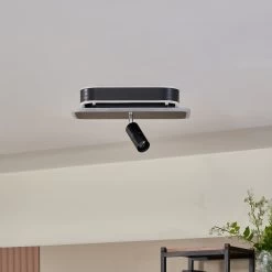 Mit Hilfe der 4-Stufen-Dimmtechnik sowie der regulÀren Off-Funktion lÀsst sich die Leuchte in 100 %, 60 % und 20 % ihrer gÀngigen Helligkeit dimmen und wie gewohnt an- und ausschalten. In einer vierten Dimmstufe schaltet sich nur das Leselicht mit voller Helligkeit ein. Dies geschieht durch das mehrmalige BetÀtigen des Schalters.