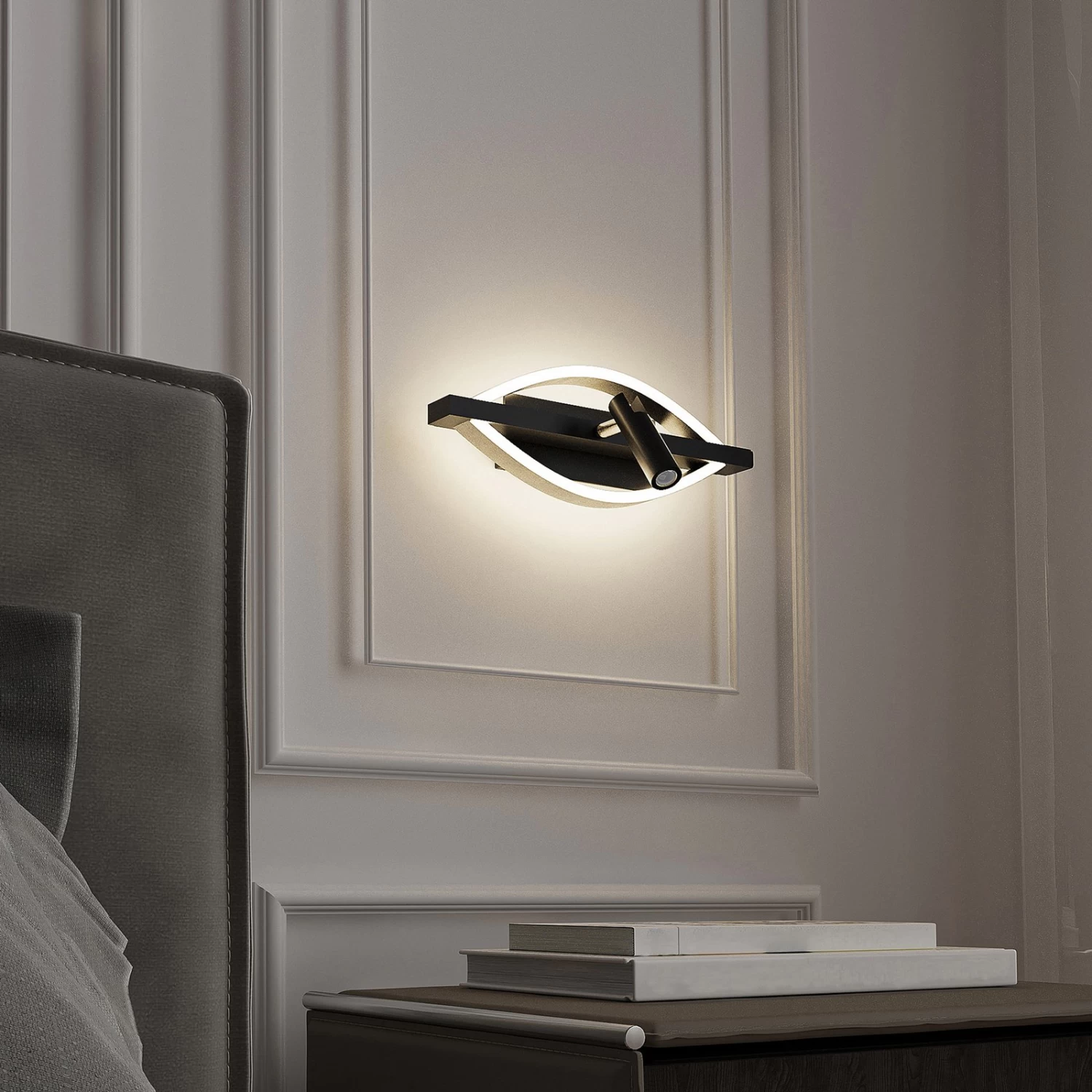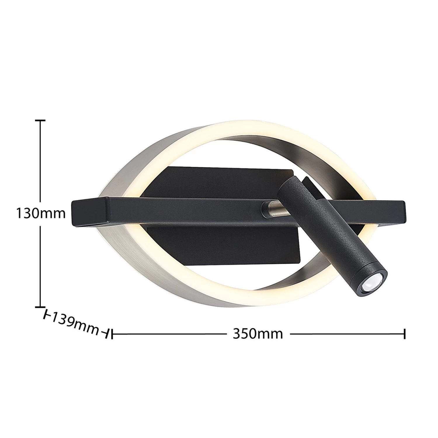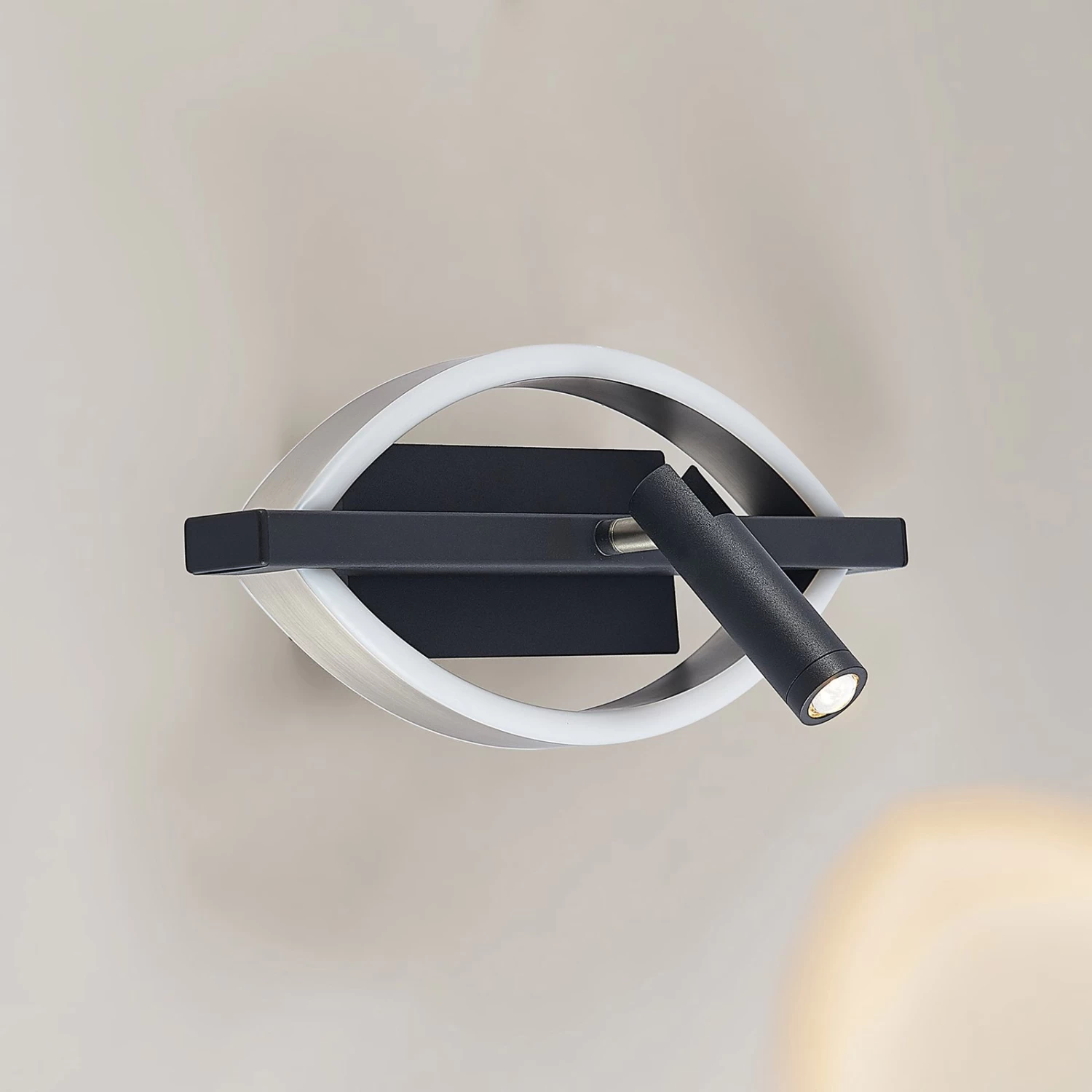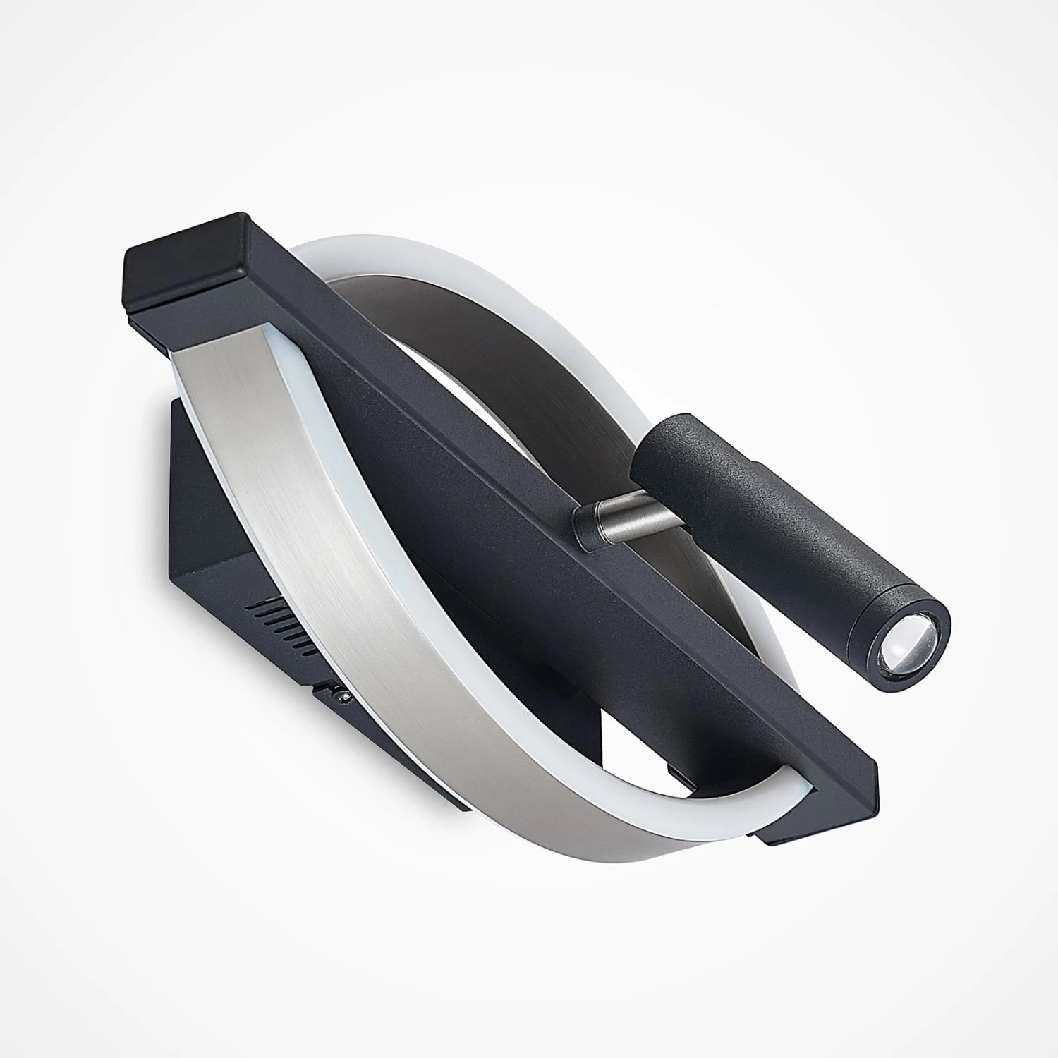 Dimmbare LED-Wandleuchte Matwei im exklusiven Schwarz-Nickel Design mit einem beweglichen Strahler