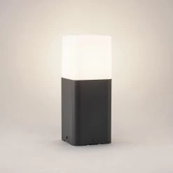 FĂŒr alle Gelegenheiten rund ums Haus bietet die klassisch eckig gestaltete Sockelleuchte Obuna eine gute Orientierungsbeleuchtung in den Abend- und Nachtstunden. Der aus Aluminium gefertigte, dunkelgraue Korpus der Leuchte ist in einem viereckigen Design gehalten und wird mit einem aus opalweiĂem Kunststoff bestehenden Lampenschirm ergĂ€nzt. Dieser sorgt dafĂŒr, dass das Licht gleichmĂ€Ăig zu allen Seiten hin abgegeben wird. Ideal fĂŒr die Beleuchtung von zum Beispiel HauseingĂ€ngen oder auch fĂŒr den Einsatz im Bereich der Terrasse.