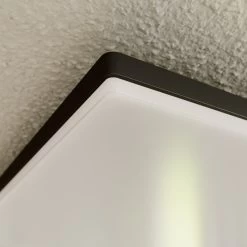 Alle Seitenmaße dieser LED-Deckenleuchte, die für die Verwendung im Außenbereich konzipiert worden ist, sind gleich, so dass man eine quadratische Leuchte erhält, die sich in zeitloser Optik präsentiert. Das Aluminiumgestell mit der dunkelgrauen Lackierung hält sich dezent im Hintergrund. Die warmweißen LEDs der Deckenleuchte werden von einer weißen Polycarbonatabdeckung bedeckt, was den Lichtschein weicher und gleichmäßiger verteilt. Insbesondere für überdachte Bereiche rund um Haus und Garten kann Henni sehr gut als LED-Deckenleuchte empfohlen werden. Eine weitere Montagevariante liegt darin, Henni an der Wand anzubringen und so für eine gute Ausleuchtung im Außenbereich zu sorgen.
