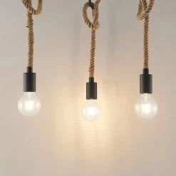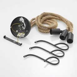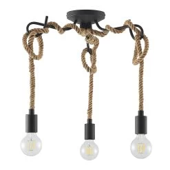 Diese Deckenleuchte hat einen ganz besonderen Look, der zum einen durch das markante OberflÀchenfinish in Schwarz und zum anderen durch die raffiniert verkleidete Verkabelung in Seiloptik gekennzeichnet ist.
