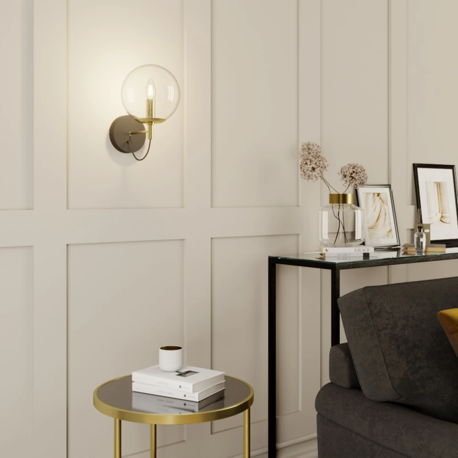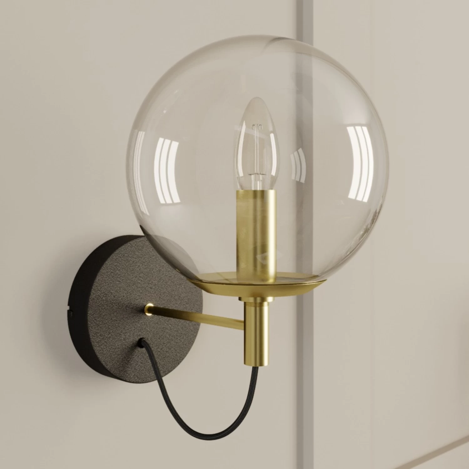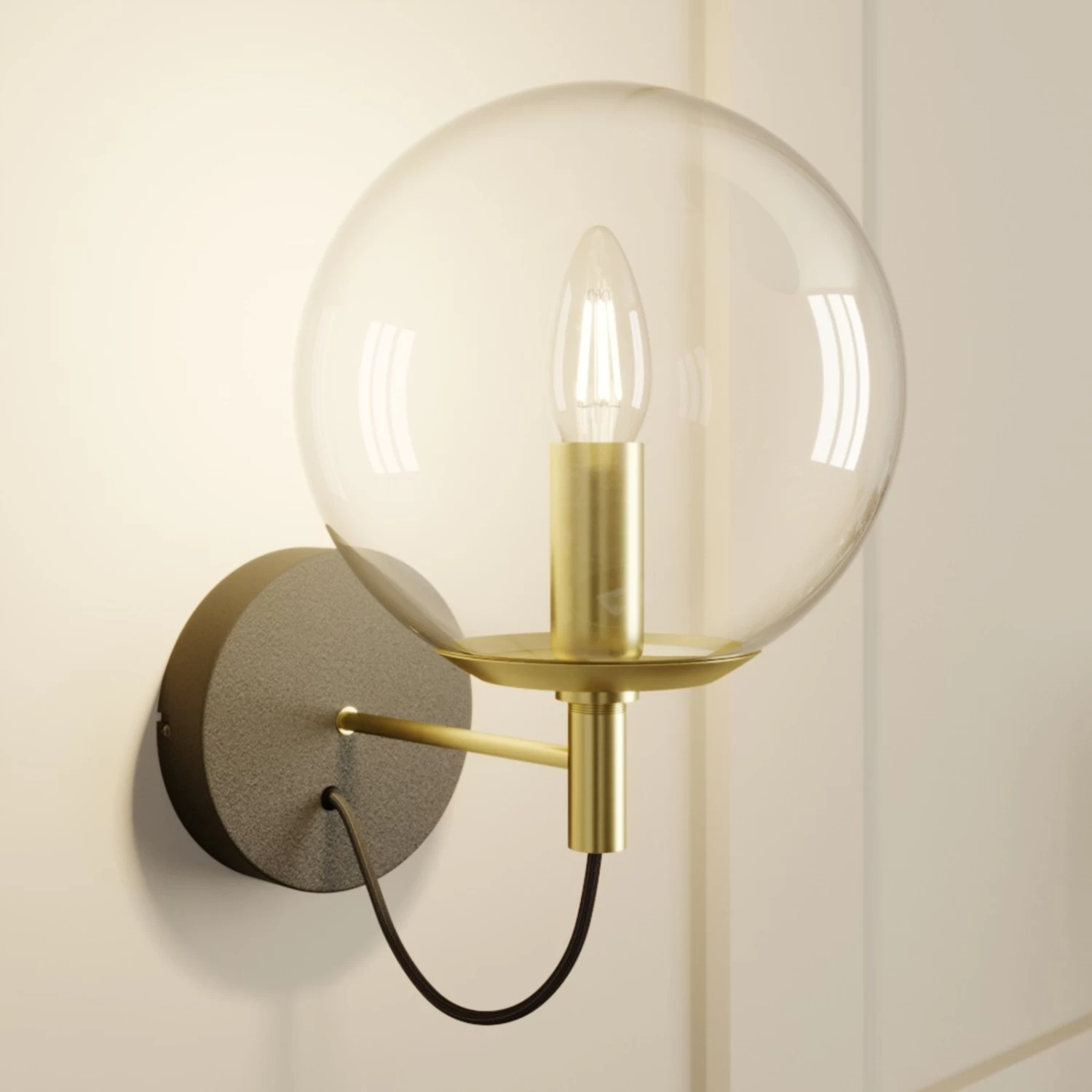 Lucande Sotiana Wandleuchte, Glaskugel, Messing