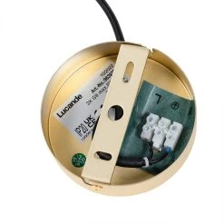 Messingfarbene HĂ€ngeleuchte Taylan mit Glas-Schirm