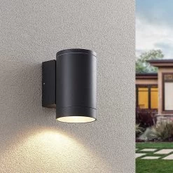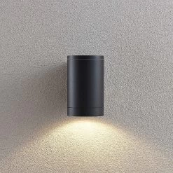 Dunkelgraue AuĂenwandleuchte Thomke mit zylindrischer Gestalt