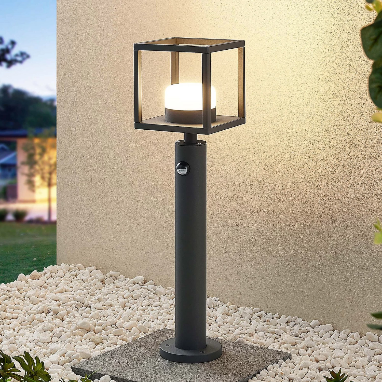 Die Wegeleuchte Timio prĂ€sentiert sich in einer besonderen AusfĂŒhrung, denn sie besitzt einen integrierten Bewegungsmelder. Dieser lĂ€sst seine Leuchtdauer von 8 Sekunden bis zu 8 Minuten einstellen und kann Bewegungen in einem Winkel von 120° und aus einer Entfernung von 6 bis zu 10 Metern registrieren. Des Weiteren besitzt er einen DĂ€mmerungssensor, der ebenfalls manuell eingestellt werden kann. Diese Wegeleuchte ist eine Bereicherung fĂŒr Gartenwege und ist besonders praktisch, wenn man in der dunklen Jahreszeit nach Hause kommt und der Gartenweg in einem angenehmen Licht erleuchtet wird. Das Gestell aus dunkelgrauem Aluminium harmoniert dabei sehr gut mit modernen Stilen.