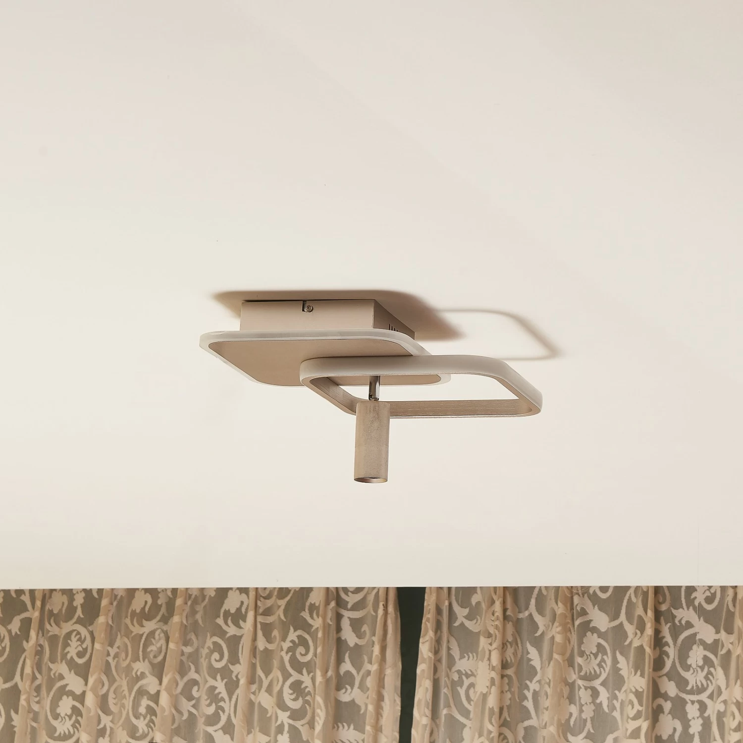 Nickelfarbene LED-Deckenleuchte Tival in eckiger Form