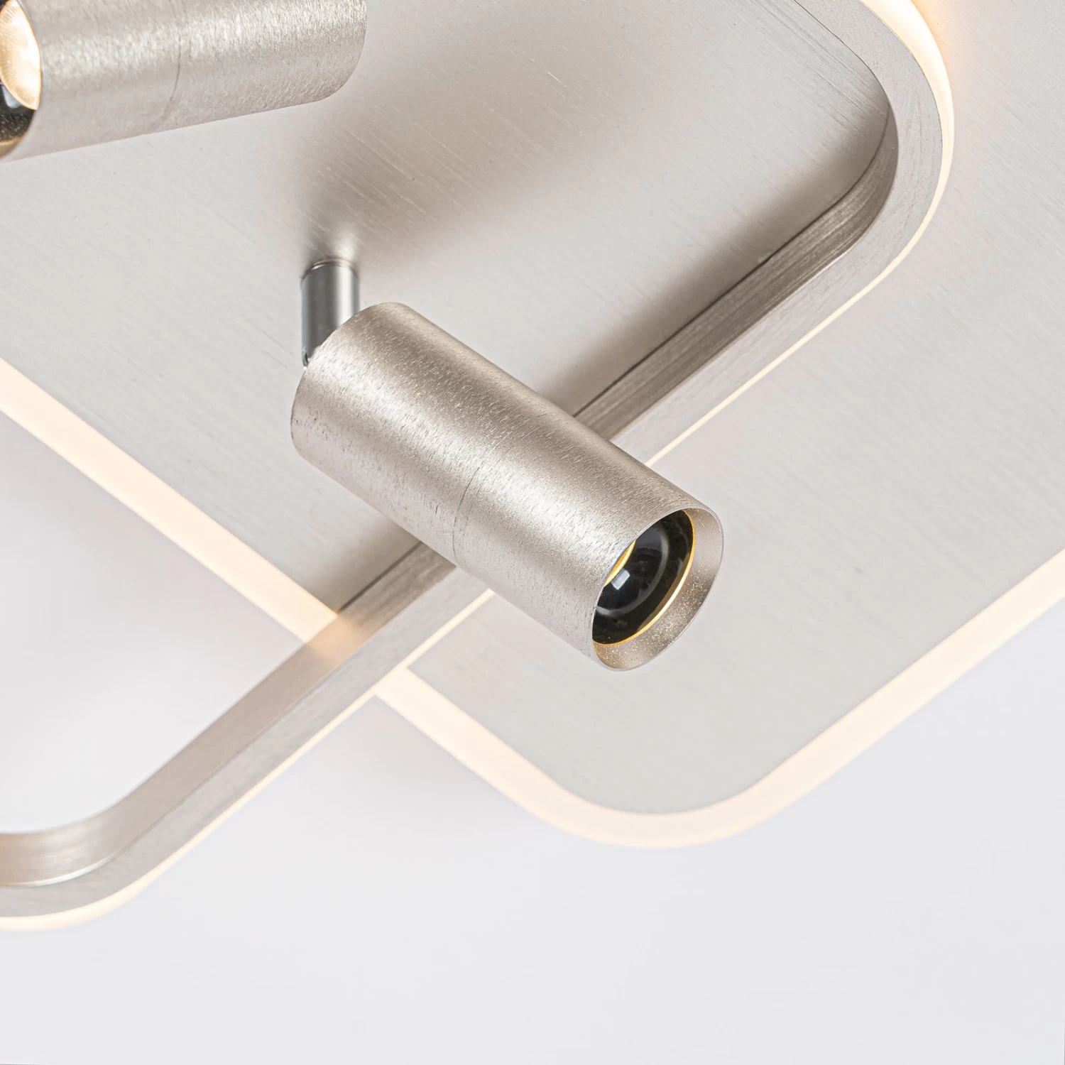 Nickelfarbene LED-Deckenleuchte Tival in eckiger Form