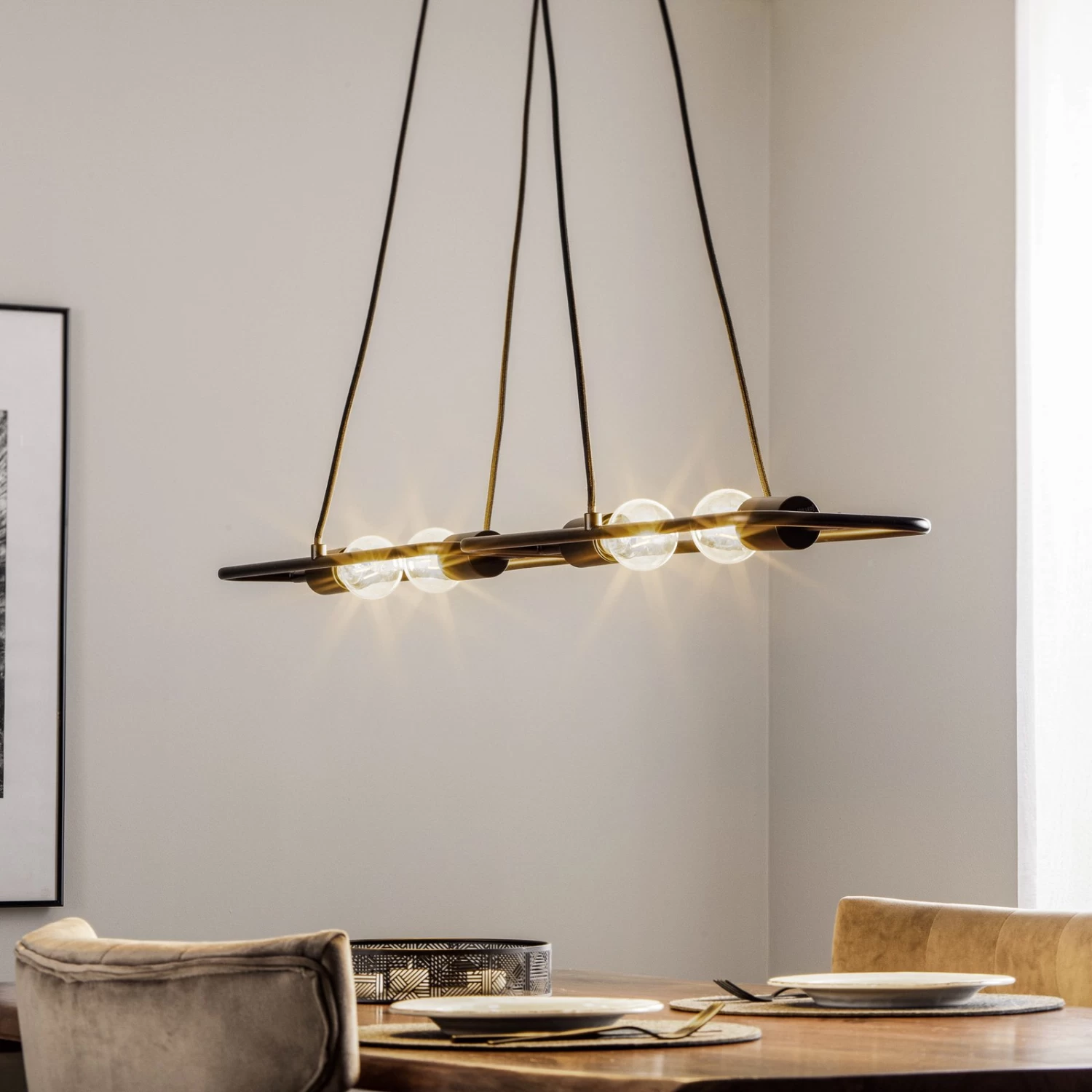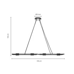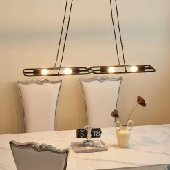 Tornike eignet sich hervorragend fĂŒr die Beleuchtung eines Wohnzimmers oder eines Schlafzimmers. Die HĂ€ngelampe ist aus Stahl hergestellt und prĂ€sentiert sich in einer mattschwarzen Farbe. Sie besitzt vier Fassungen, die sich jeweils zu zweit in einem Rahmen gegenĂŒberstehen und mit entsprechenden Leuchtmitteln bestĂŒckt werden können. Durch den freien Blick auf die Lichtquellen, eignen sich in diesem Fall vor allem Filament-Leuchtmittel. Diese besitzen ein besonderes Aussehen und verleihen der Leuchte das gewisse Etwas. Mit ihrer AufhĂ€ngung eignet sich Tornike perfekt fĂŒr die Installation ĂŒber einem Esstisch.