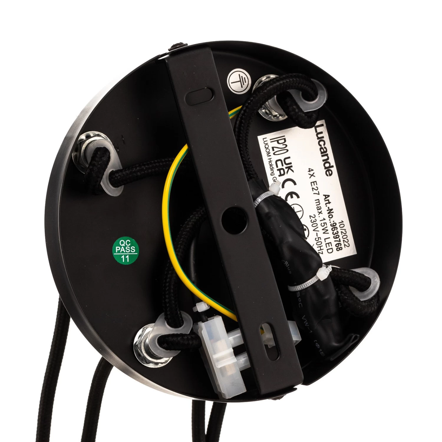 Aus Stahl hergestellte HĂ€ngeleuchte Tornike mit vier freiliegenden Fassungen