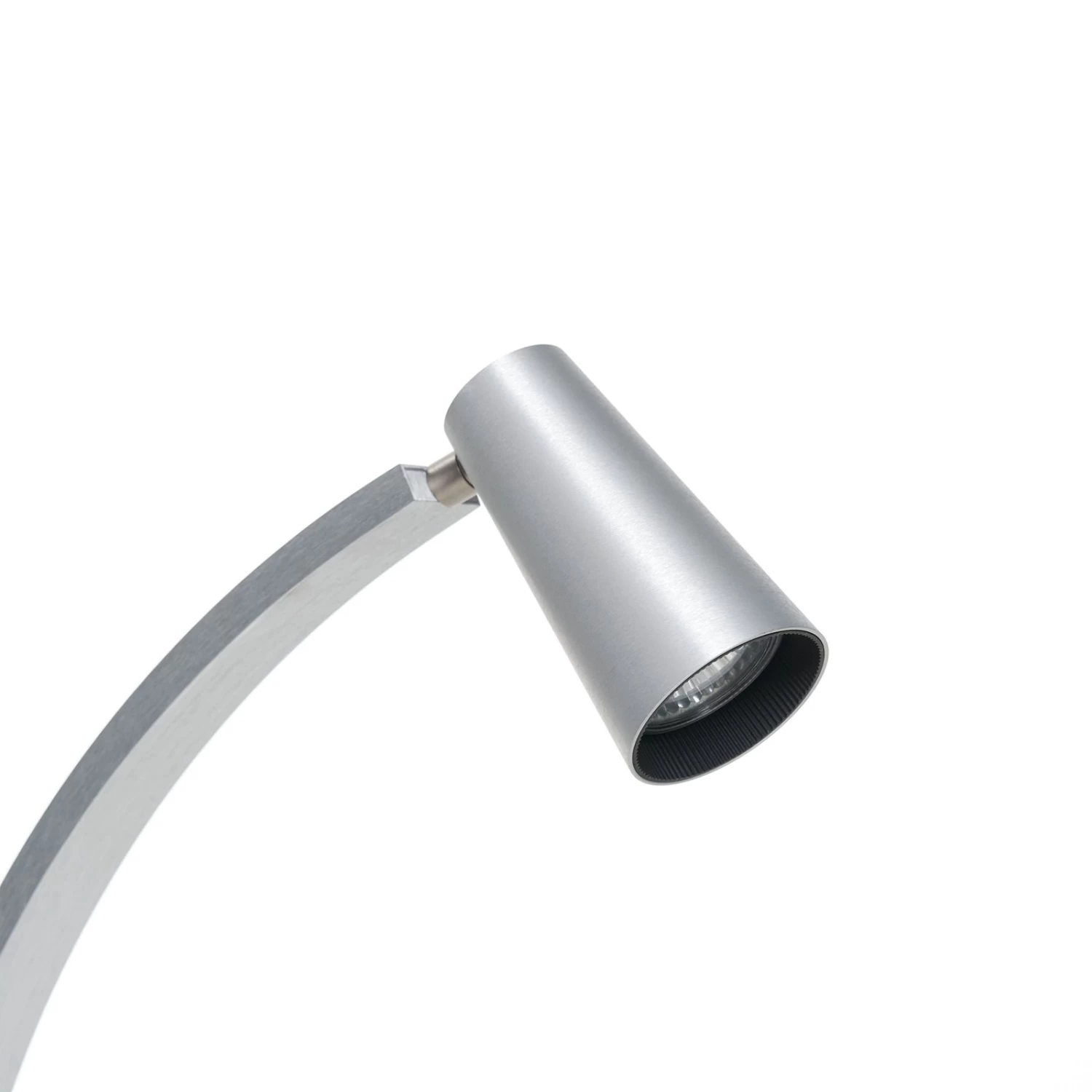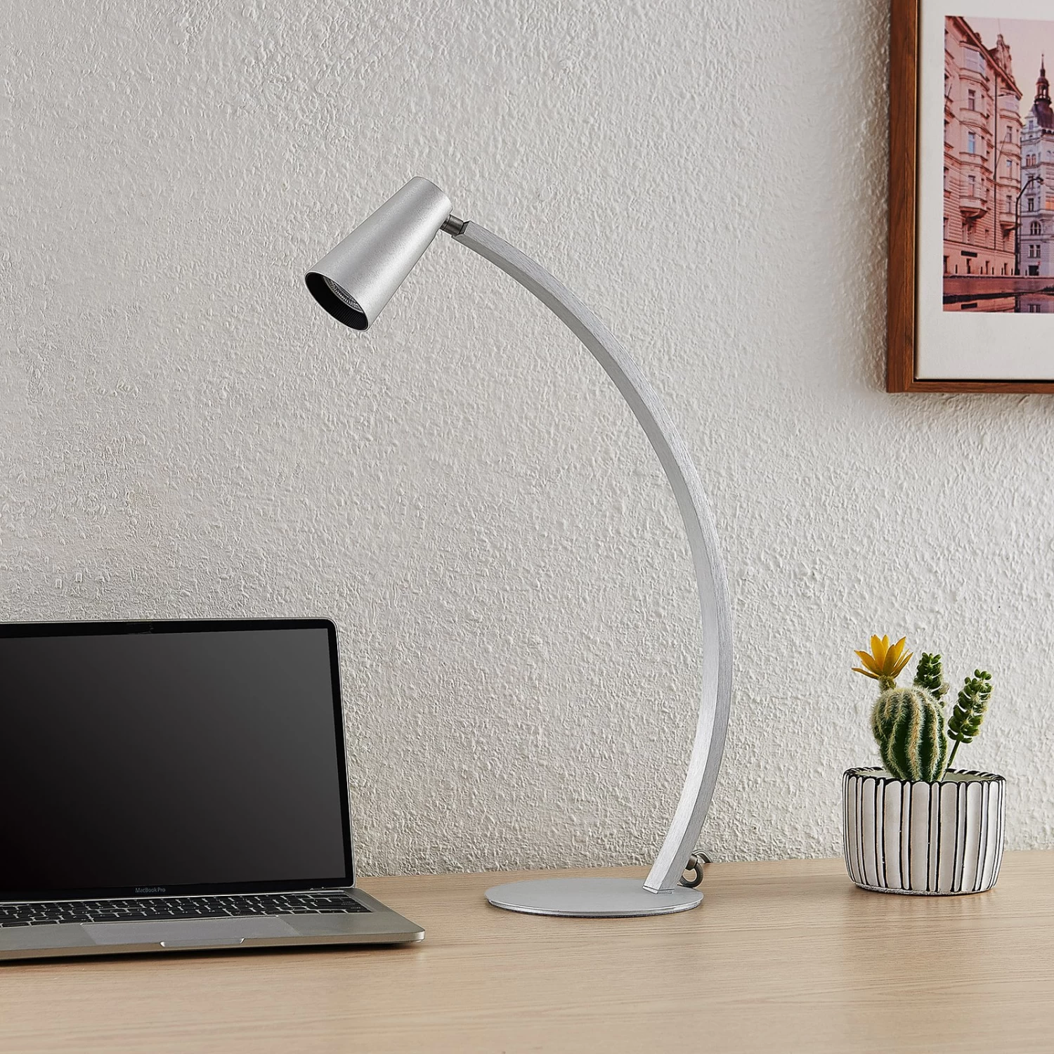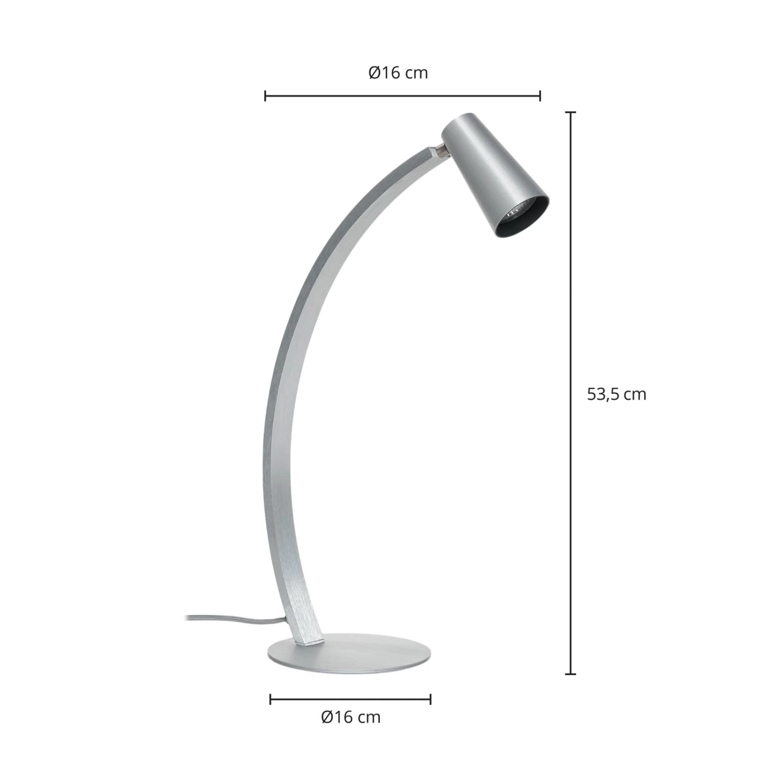 Gebogene Tischlampe Velanoris mit gebürsteter Alu-Oberfläche
