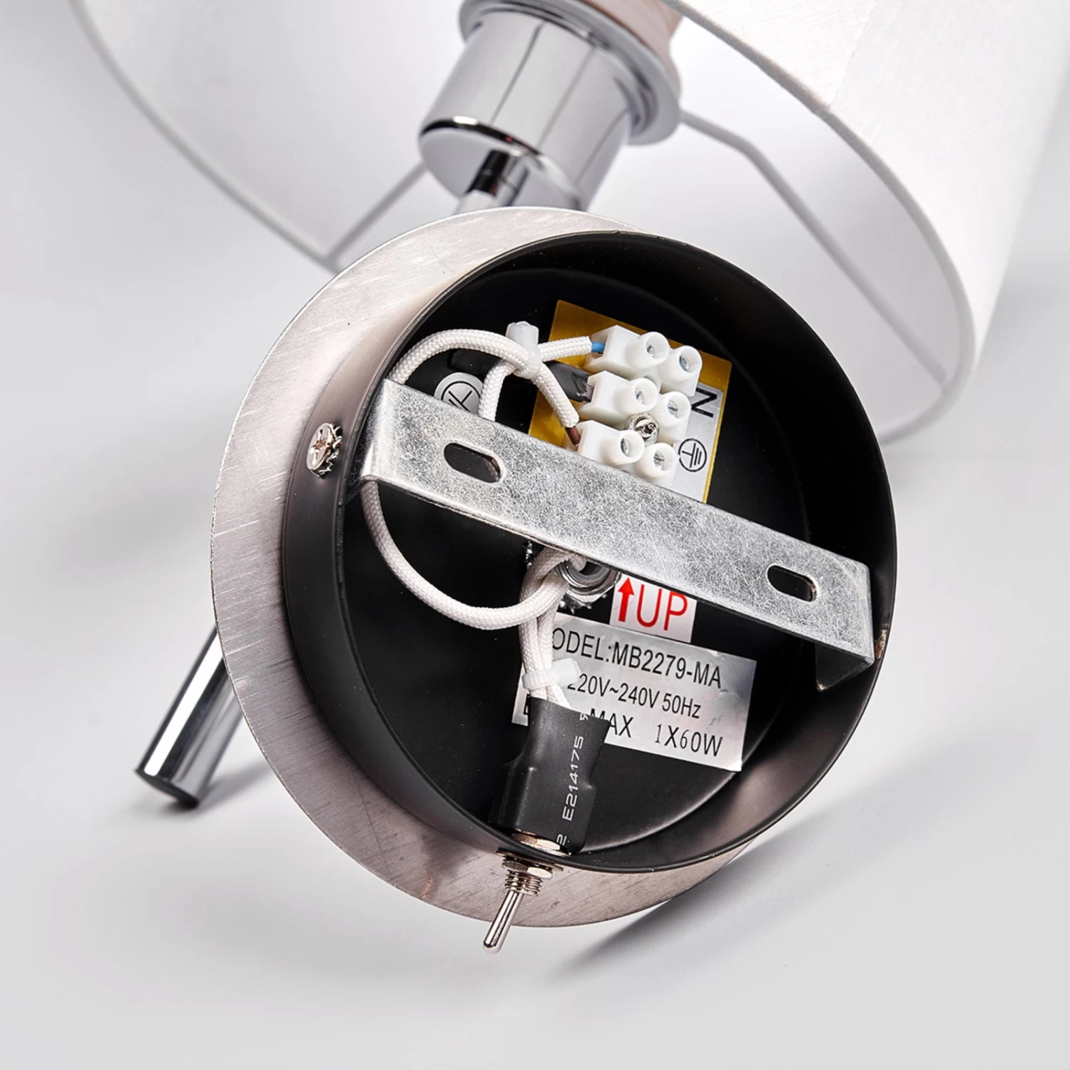 Die Wandlampe Dorothea besitzt einen besonders zeitlosen Charakter. Das liegt daran, dass sie mit der Kombination aus weißem Stoffschirm und Metallgestell ein traditionelles, aber dezentes Erscheinungsbild verkörpert, das man schon seit Jahrzehnten kennt. Das Gestell hat eine schöne Hochglanzchromoberfläche und der weiße Stoffschirm sorgt für ein wunderbar gemütliches Licht. Zur komfortablen Bedienung ist Dorothea mit einem am Gestell sitzenden Kippschalter ausgestattet.