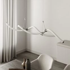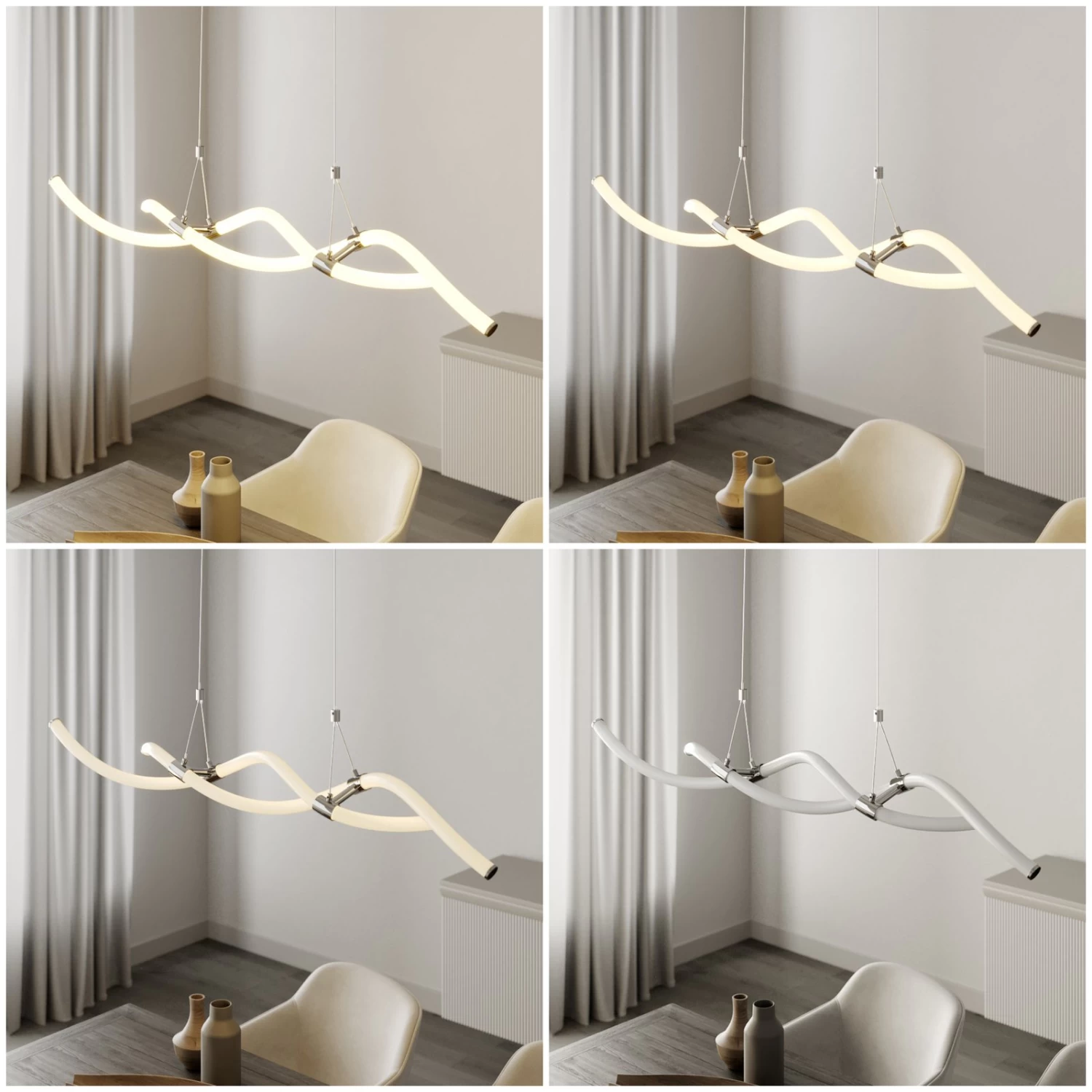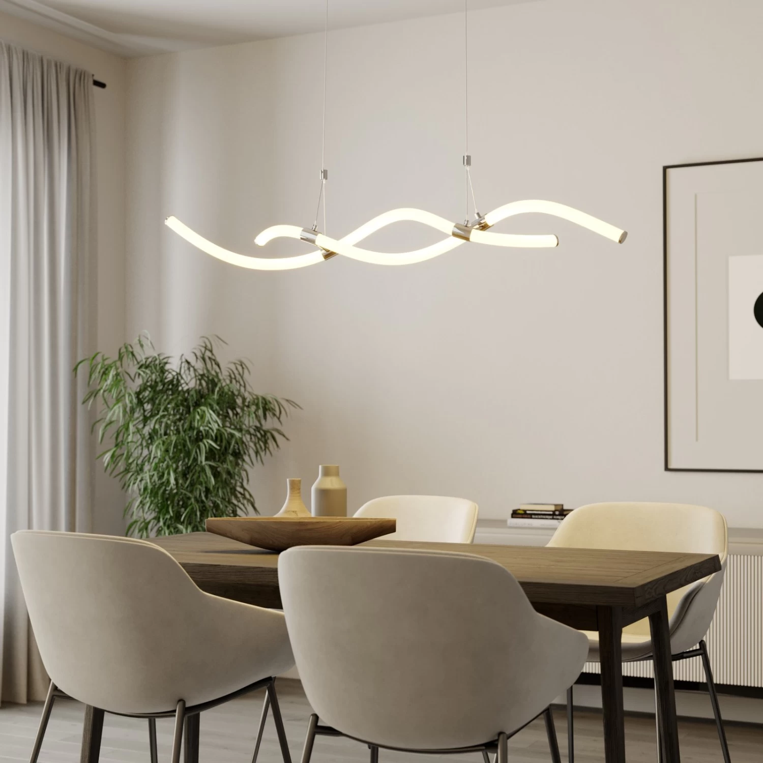 Die Leuchtenkörper sind elegant geschwungen, sodass sie optisch an Wellen erinnern. Deshalb ist Wewa auch im ausgeschalteten Zustand ein echter Hingucker, der sich an jeder Decke schön macht und ein harmonisches Esprit versprĂŒht. Das Highlight bildet die Switch-Dim-Funktion, mit deren Hilfe man die Helligkeit im Raum dreistufig einstellen kann.