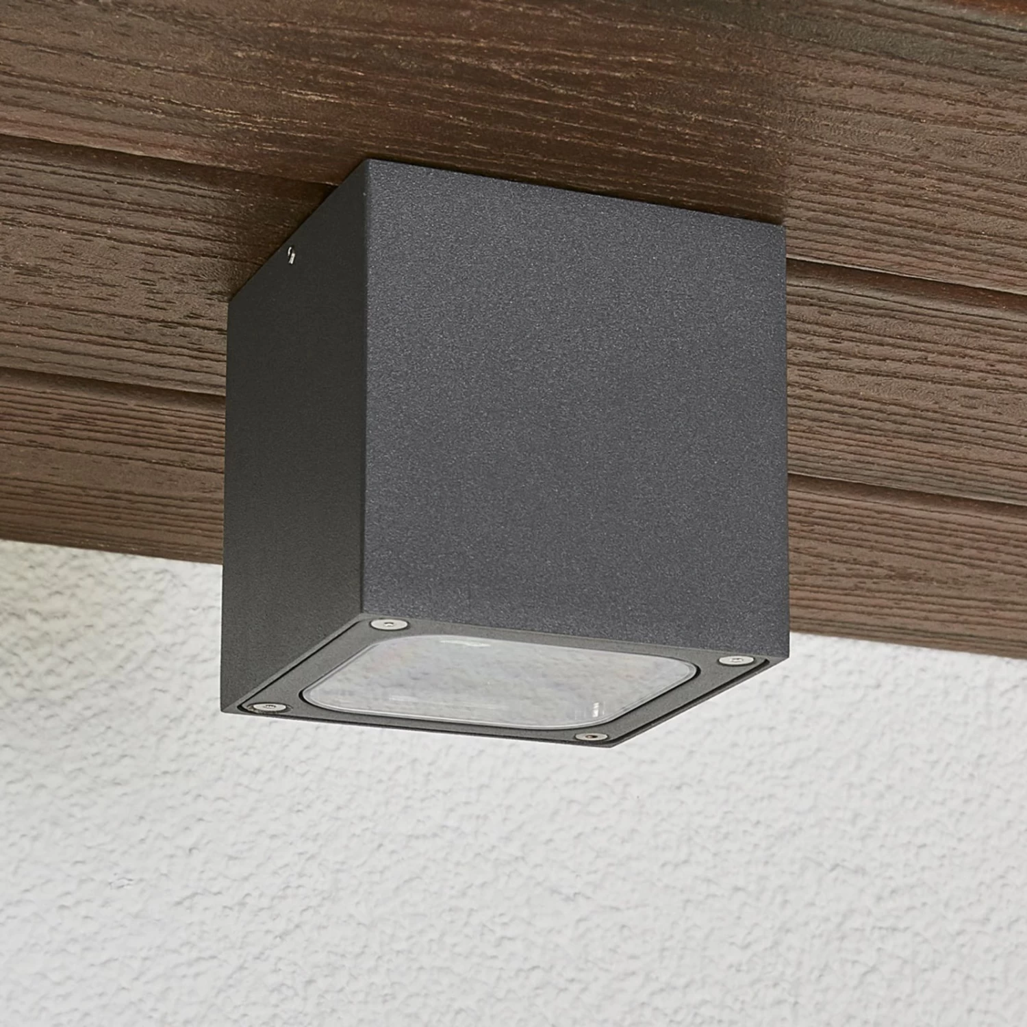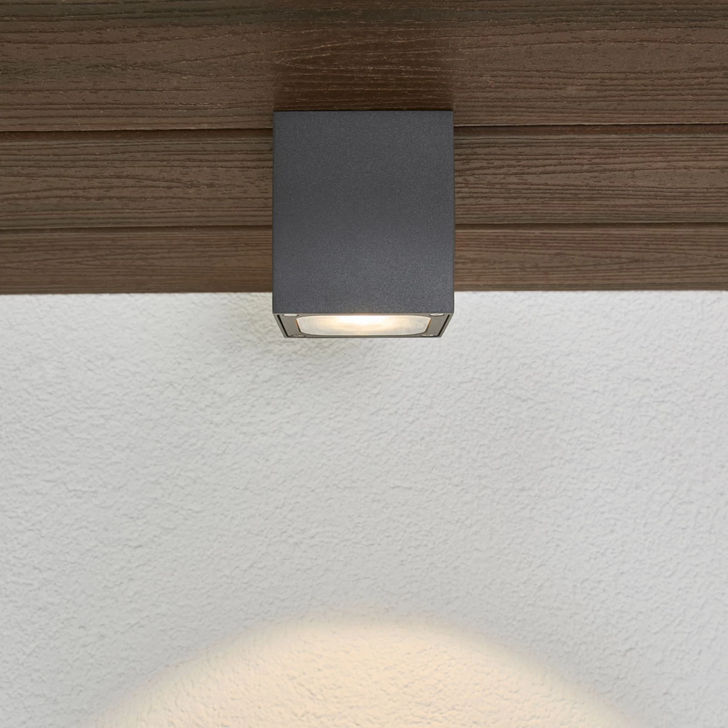 Dunkelgraue LED-Außendeckenleuchte Tanea in eckiger Form