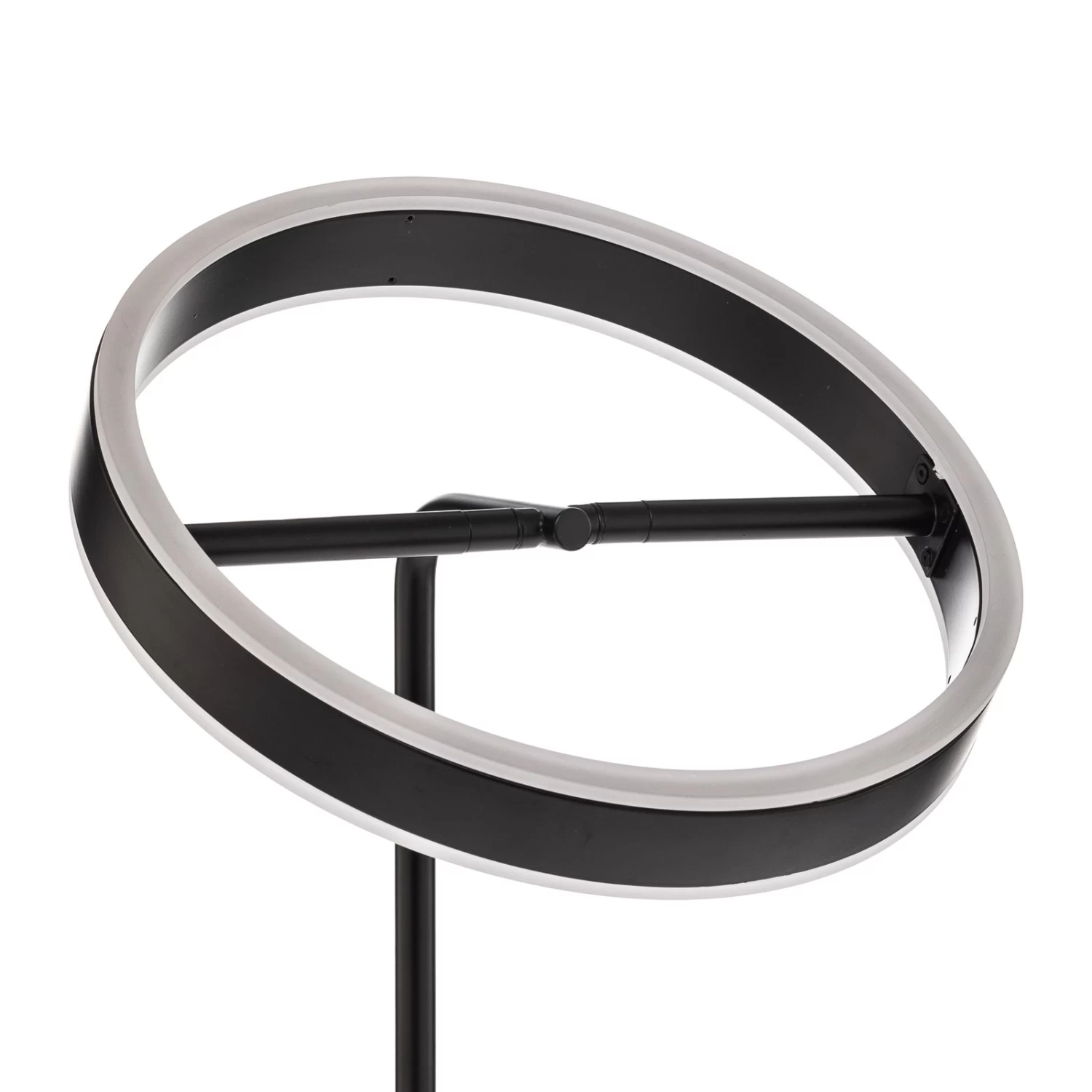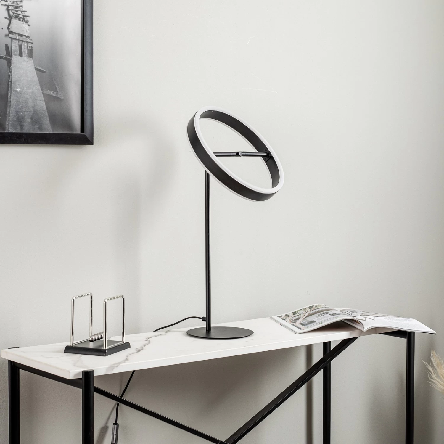 Schwarze LED-Design-Tischleuchte Yekta mit ringförmigem Schirm und Stepdim-Funktion via Schalter