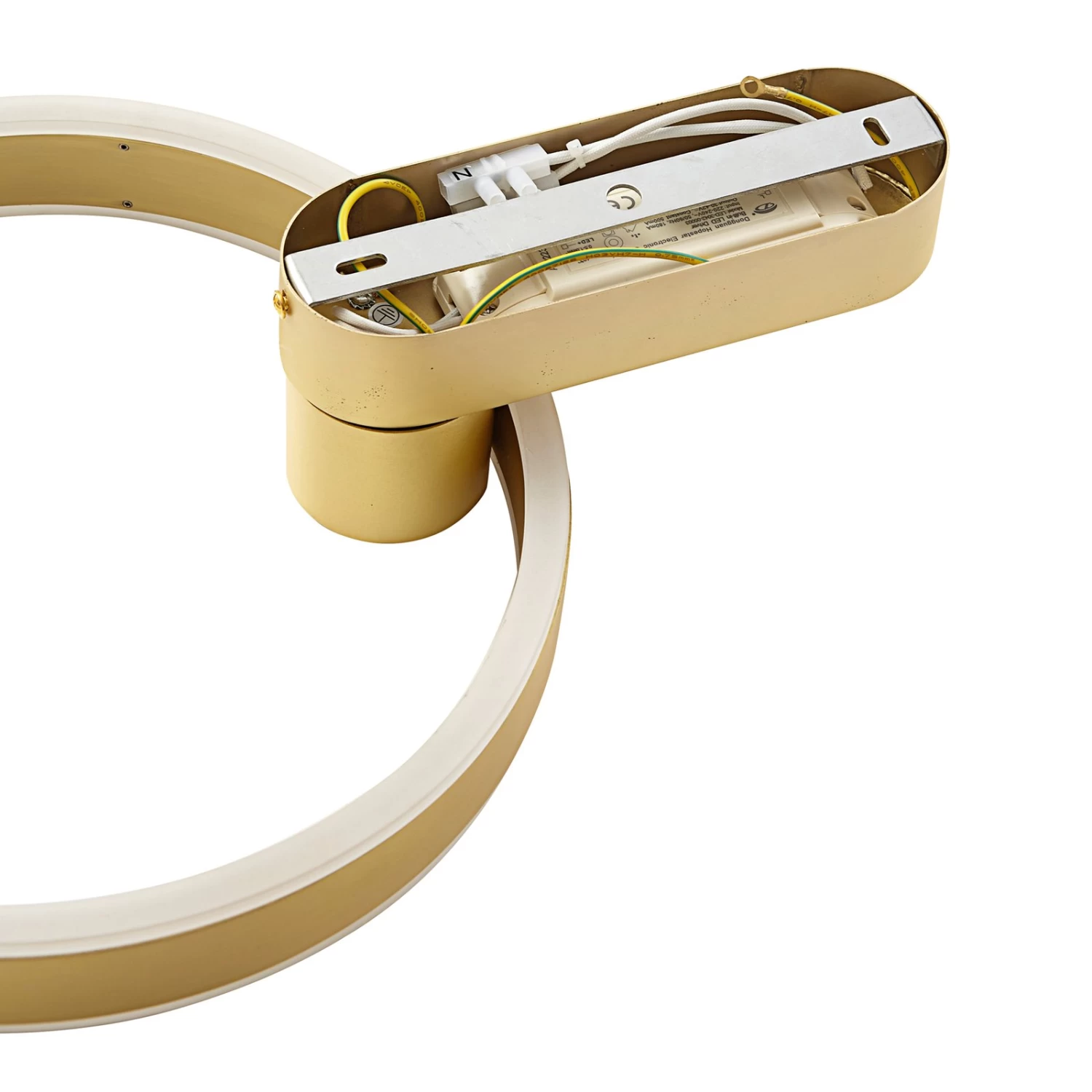 Indirekt leuchtende LED-Design-Wandleuchte Yekta mit messingfarbenem Leuchtring, dimmbar per Schalter